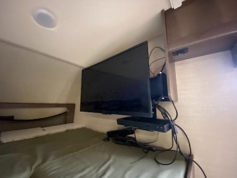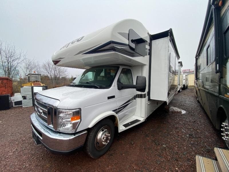 Load up your family and head out on your next road trip with this 29MV Greyhawk class C motor home by Jayco. Along the exterior you will find plenty of storage compartments for all of your exterior camping gear, plus there is a 16' awning where you can plan to visit with family and friends. Inside this model there are double slide outs which help to open up the floor space. Seating can be found at the dinette and the tri-fold sofa and at night both the dinette and sofa easily convert into additional sleeping space. In the rear bedroom you will find a walk-around queen bed, a large wardrobe, and a TV.