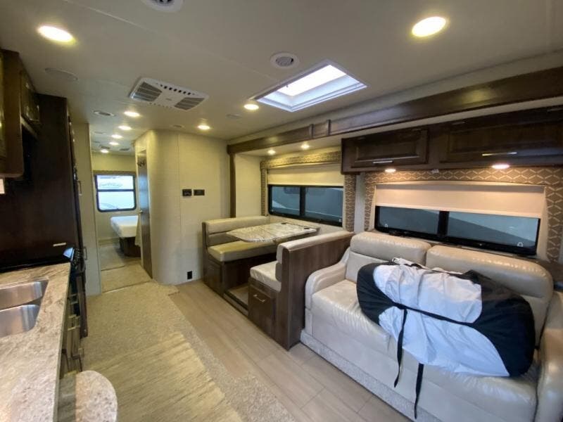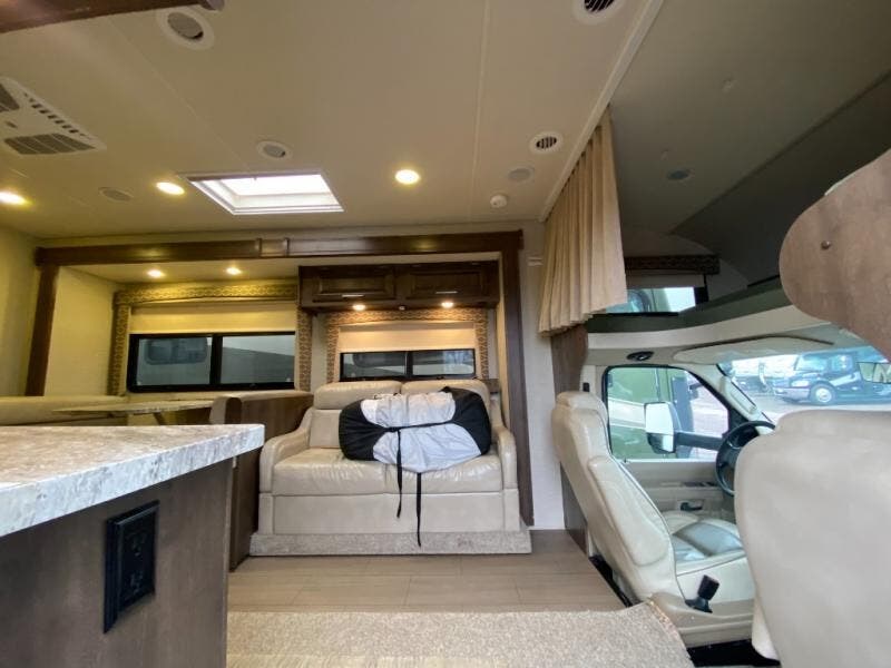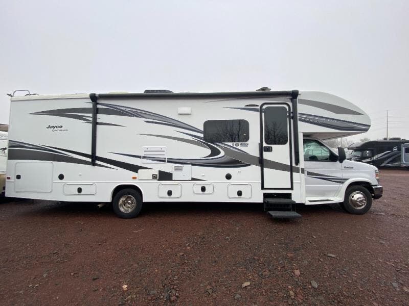 Get ready for a comfortable and fun traveling and camping experience with the Jayco Greyhawk class C motor home. The fiberglass exterior has vinyl graphics, a seamless fiberglass front cap and a one-piece fiberglass roof. In the kitchen you will find beautiful Sienna Maple cabinets, elegant countertops, and a stainless steel sink. Throughout each model there are vinyl floors, LED lights, and ball-bearing drawer guides. When you are ready for a little rest and relaxation in the evening then come to the comfortable bedroom where you will find plenty of residential touches which include a queen bed plus a 24" LED TV! The mandatory Customer Value Package includes features such as a JRide Plus, a Jayco-exclusive Garmin Infotainment System, remote-controlled, heated sideview mirrors, frameless windows, plus more! What are you waiting for, come enjoy the ride with a Greyhawk!