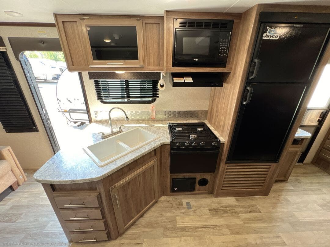 You can have easy access inside this Jayco Jay Feather travel trailer 23BHM now more than ever with two entry doors! After your adventure outdoors is over for the day, come back to the comfort of this model and enjoy your meals around the large u-shaped dinette. At night there is a Murphy Bed along the front which easily pulls down into place, as well, in the rear your kids will love their own spot with the bunk beds. You will find tinted safety-glass windows throughout this model, also outside enjoy the marine-grade exterior speakers, plus so much more!