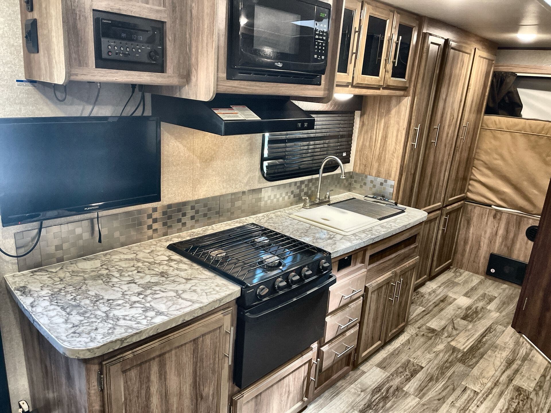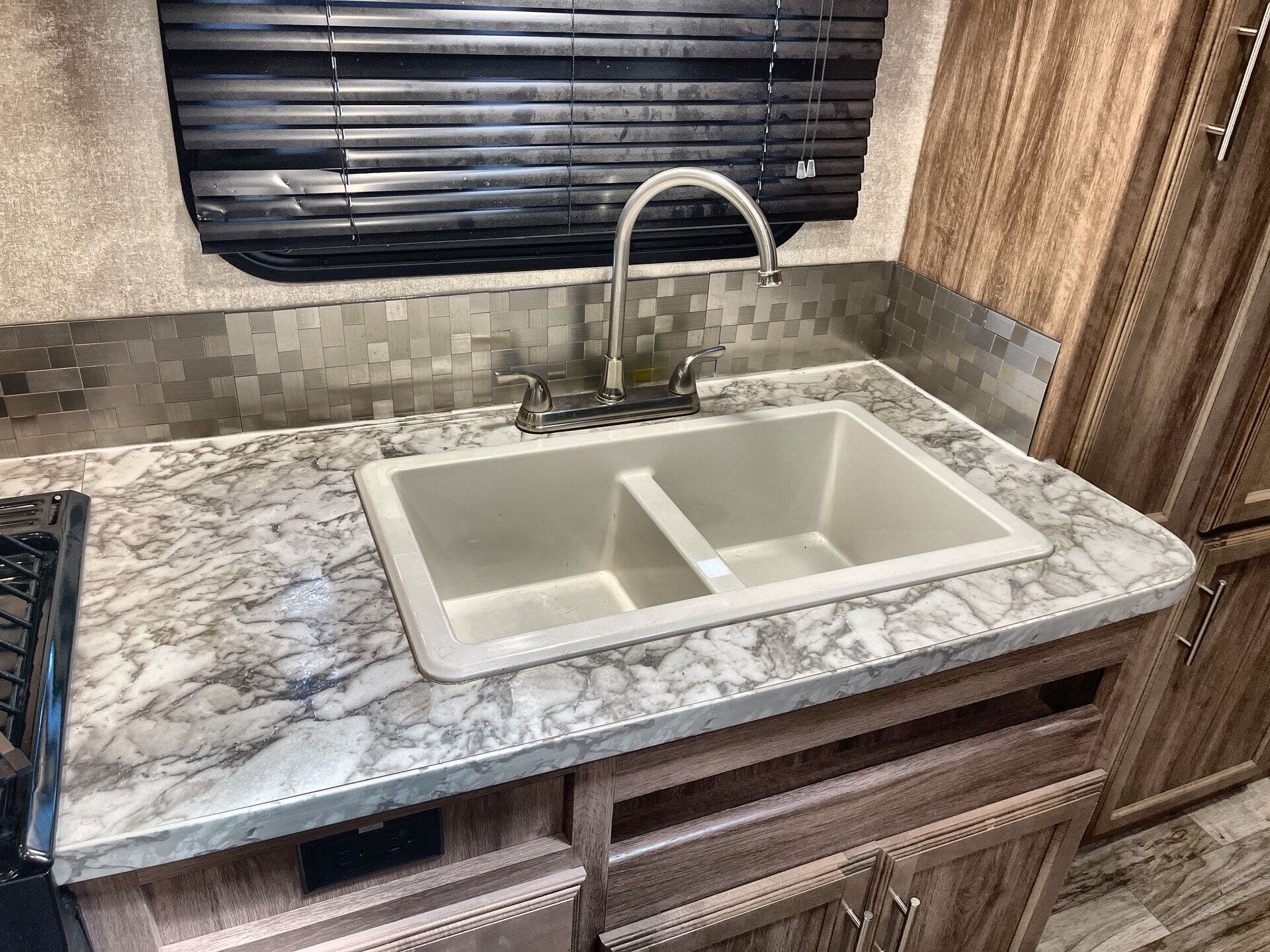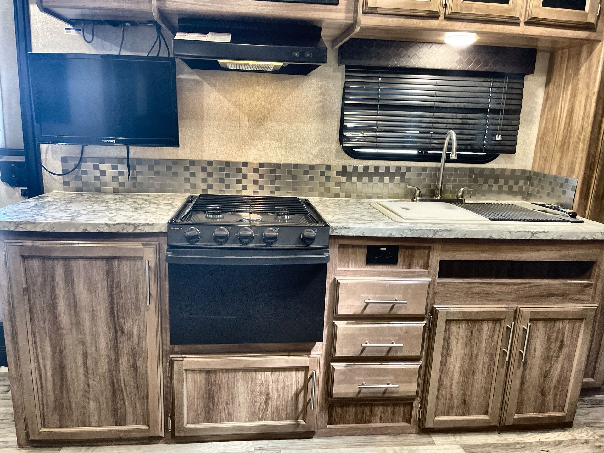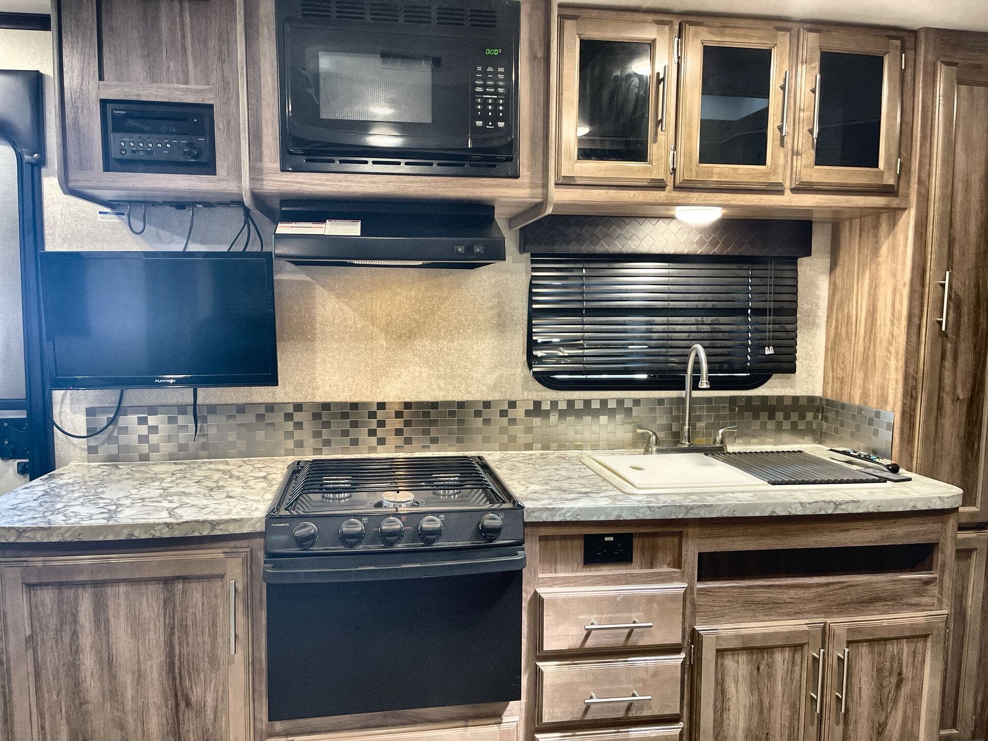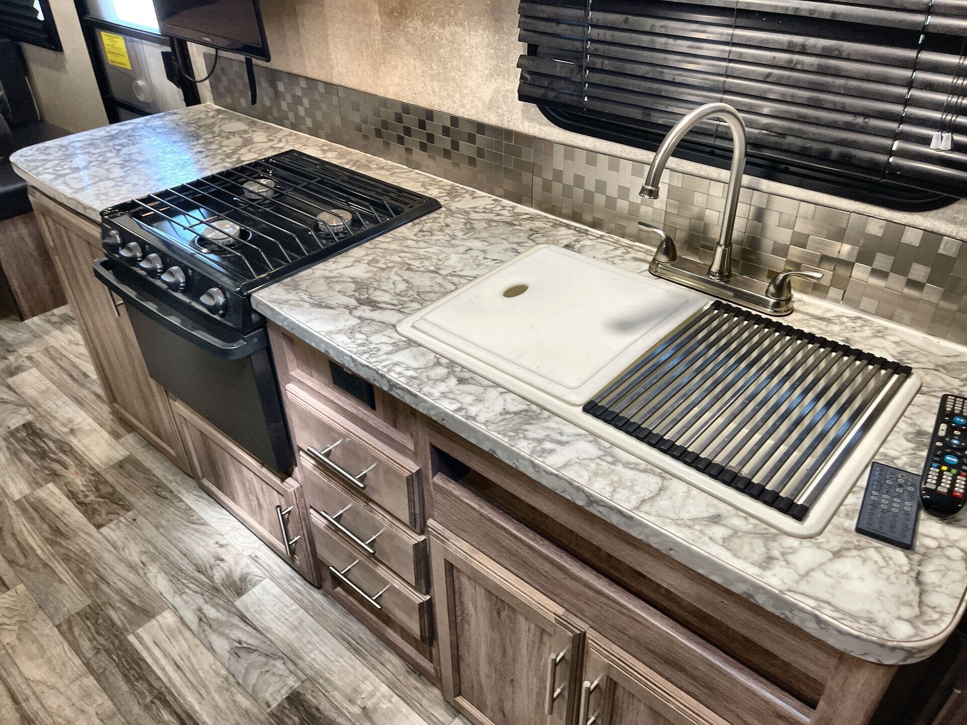 Designed for family-friendly road trips and campouts, this RV delivers a comfortable living space without sacrificing ease of towing. The mid bath, mid kitchen, and mid living area layout maximize interior flow, making it simple to navigate with kids or friends onboard. The single slide folds into a compact footprint for easier maneuvering at campsites while still providing generous interior living space when you’re parked. With essential safety features—CO and LP detectors, smoke detector, and a fire extinguisher—you can travel with peace of mind.