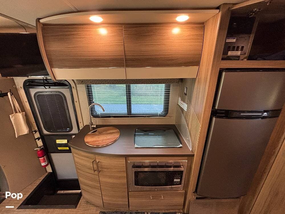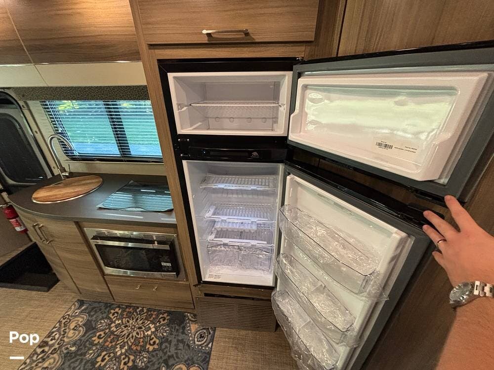 The exterior features a full-body paint finish for a sleek appearance and includes an electric awning with integrated LED lighting, allowing you to relax outside comfortably, regardless of the time of day. Generous storage compartments are built into the exterior, allowing you to bring along all your gear without sacrificing interior space.