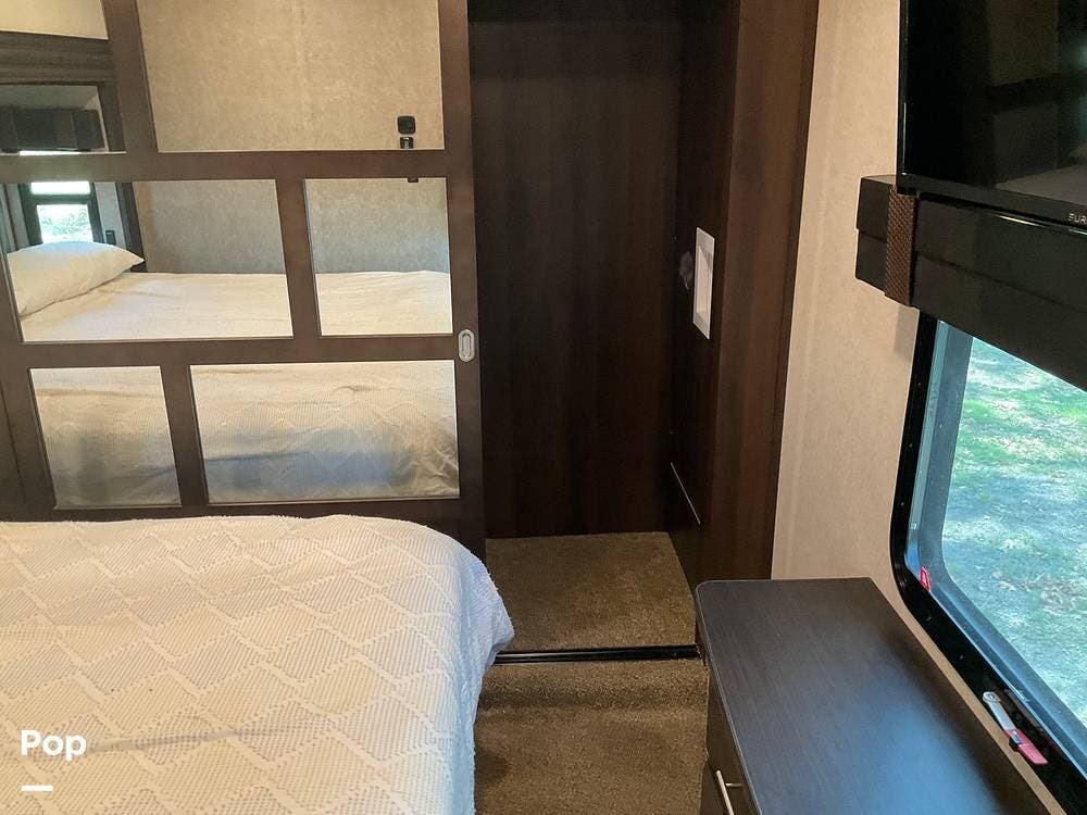 With both an outdoor kitchen and an outdoor TV, this fifth wheel is ideal for tailgating and a long weekend at the lake, perfect for the entire family.