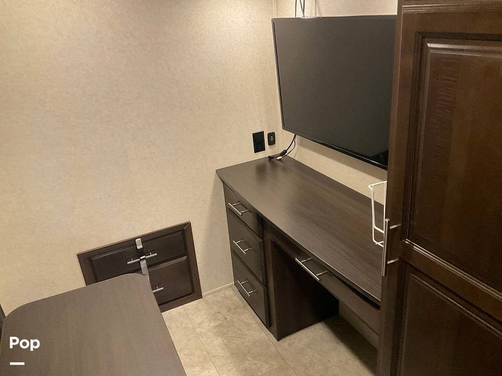 The mid RV is the bonus room, featuring an office space and desk, making it the perfect long-term work and living space.