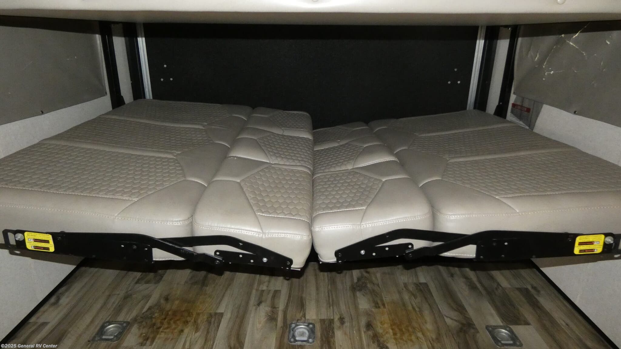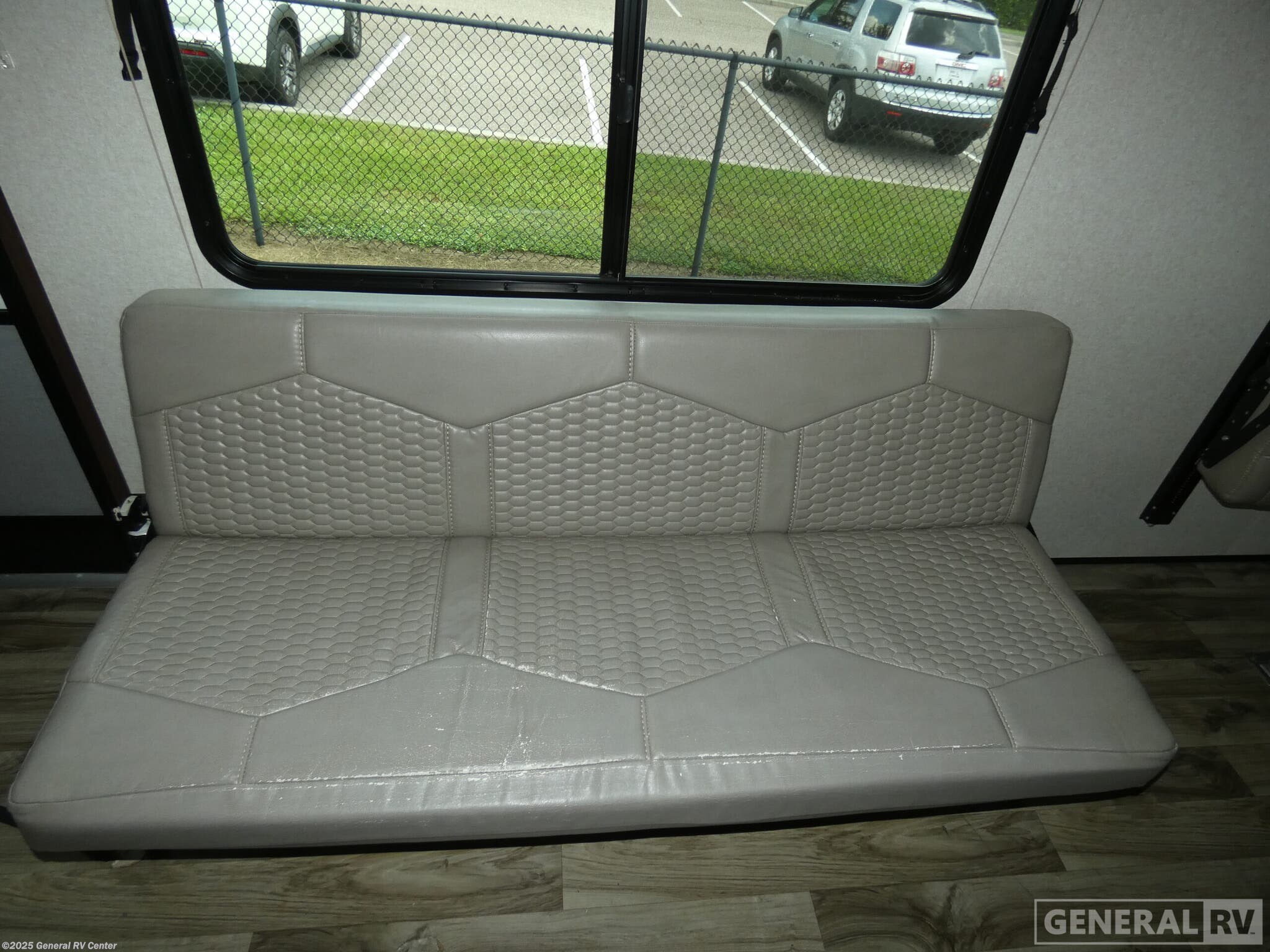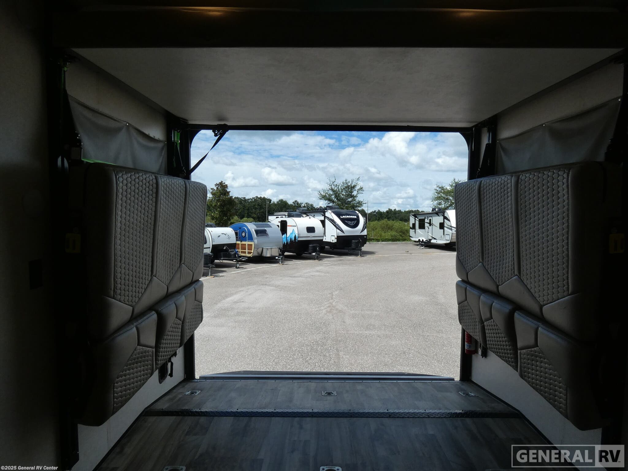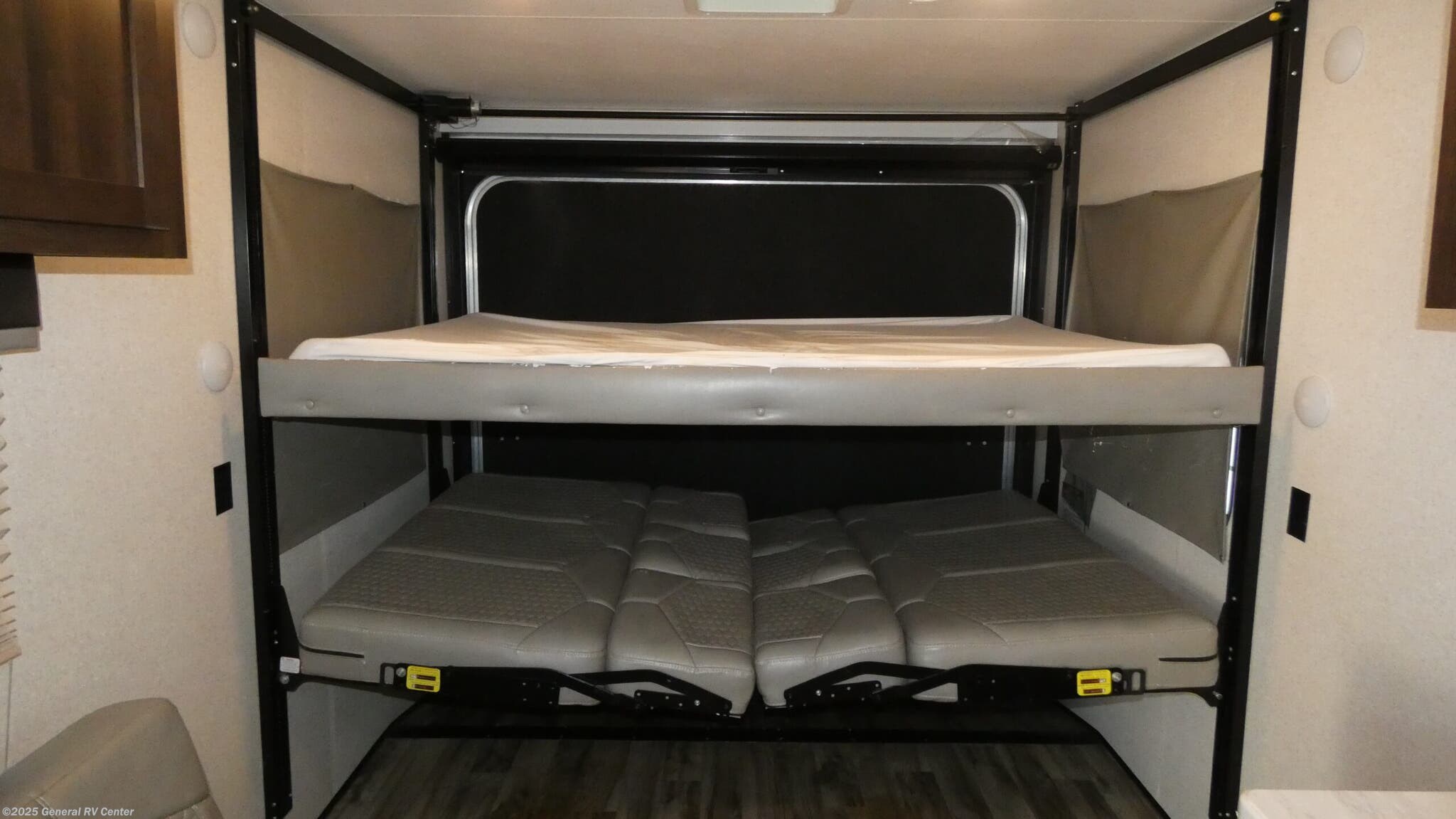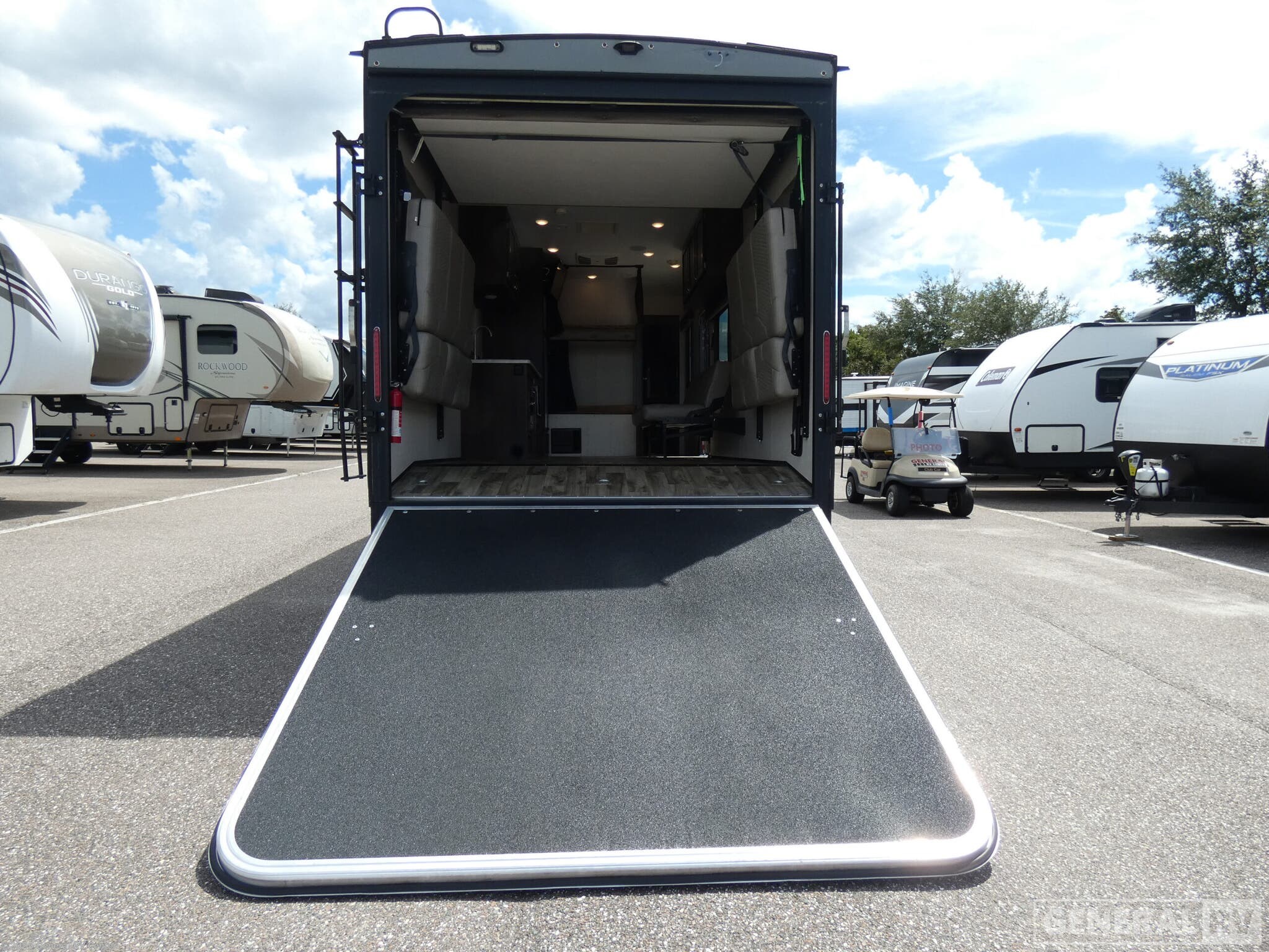 If you have been looking for bunk beds, a full bathroom, a private bedroom, and sleeping accommodations for up to ten people, it's time to check out this Octane Super Lite toy hauler. This toy hauler by Jayco also allows you to bring a few off-road toys with the help of its 15' 6" cargo area, and you will find it easy to load and unload your toys with the 7' ramp with spring assist. After your toys are removed from the cargo area, you can use the foldaway sofa and dual opposing convertible sofas for seating during the day and sleeping areas at night. You can also bring down the electric queen bunk whenever you need another bed for your guests. Check out Jayco's Octane Super Lite toy hauler and be impressed by the vast amount of convenient features it includes! The Octane's tires are Goodyear tires that have been made in the USA, so you know they are reliable and built to last, and the Sani-Con waste system will eliminate messes and unnecessary smells from clogging up your camper. The enclosed battery storage box with locking door will do a wonderful job of keeping your RV's battery protected from the elements, and the Keyed Alike lockable baggage doors will keep all of your belongings safe with the convenience of one key for all doors. Each Octane will deliver a piece of home with its comfortable furnishings located throughout the interior, like the chocolate maple wood cabinetry, vinyl flooring, and stainless steel appliances.