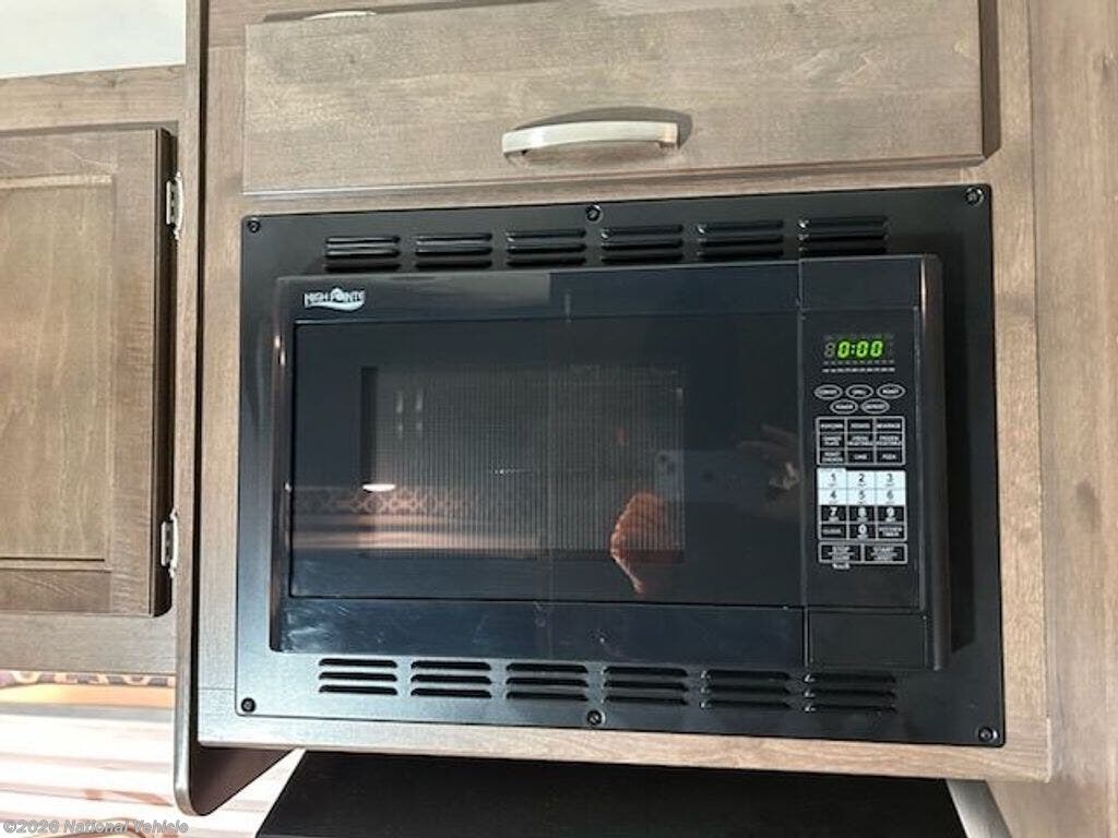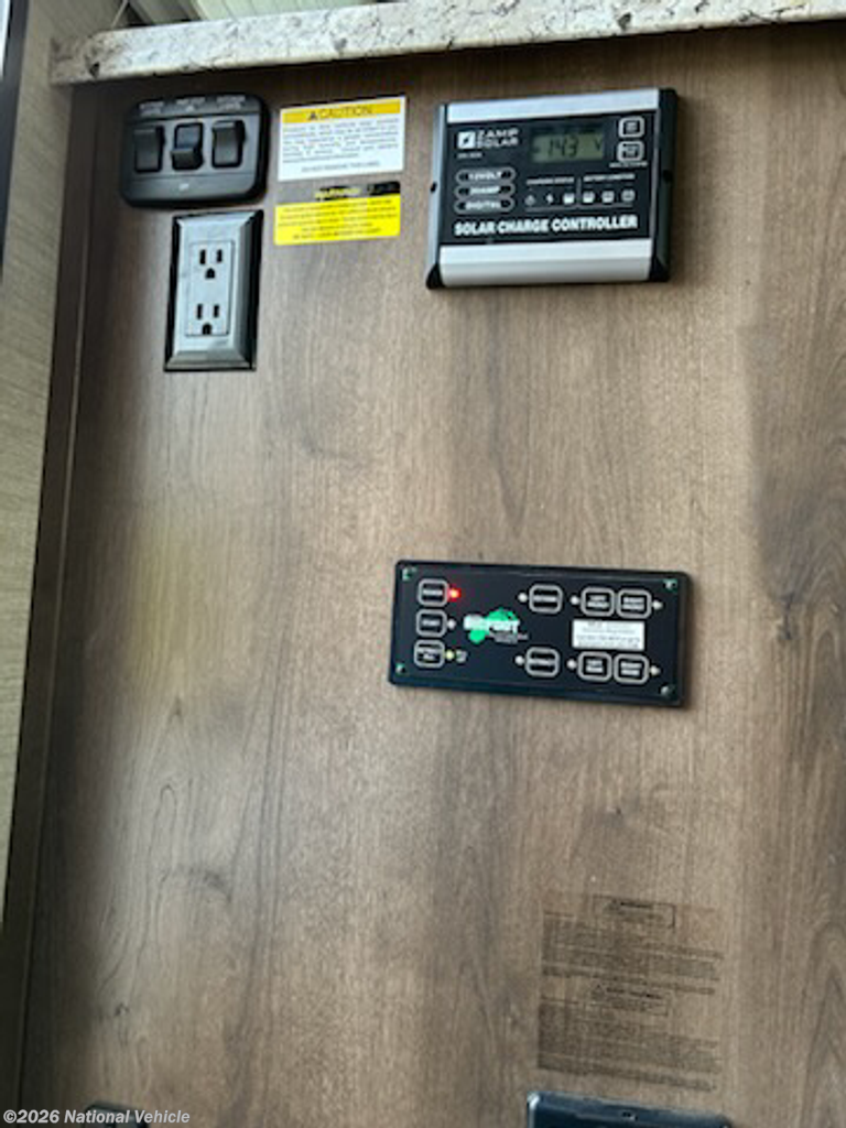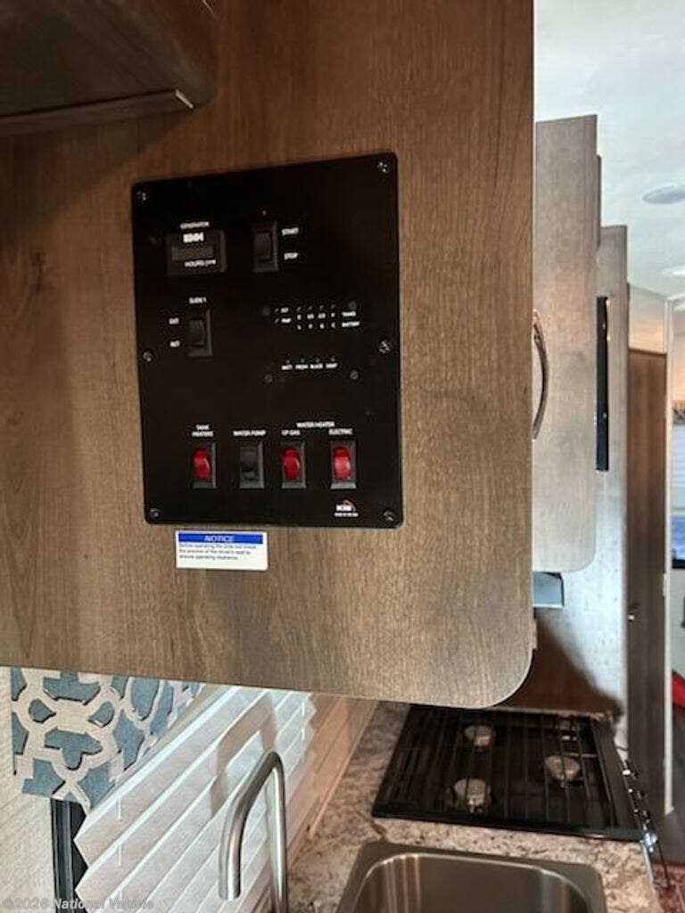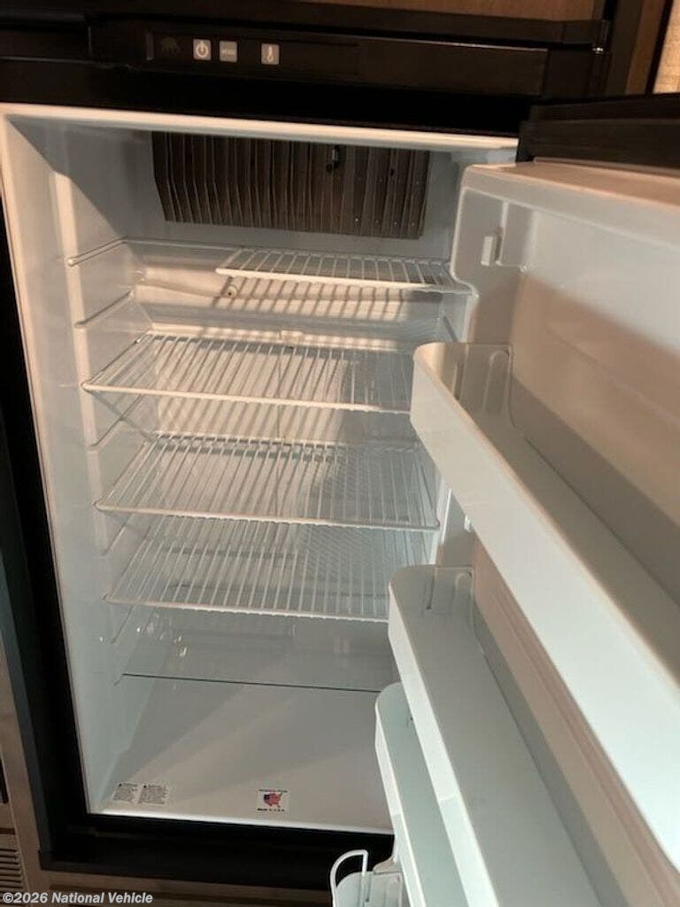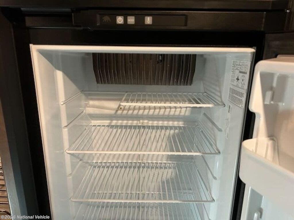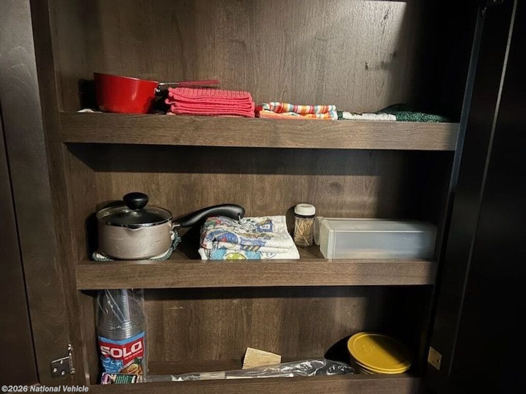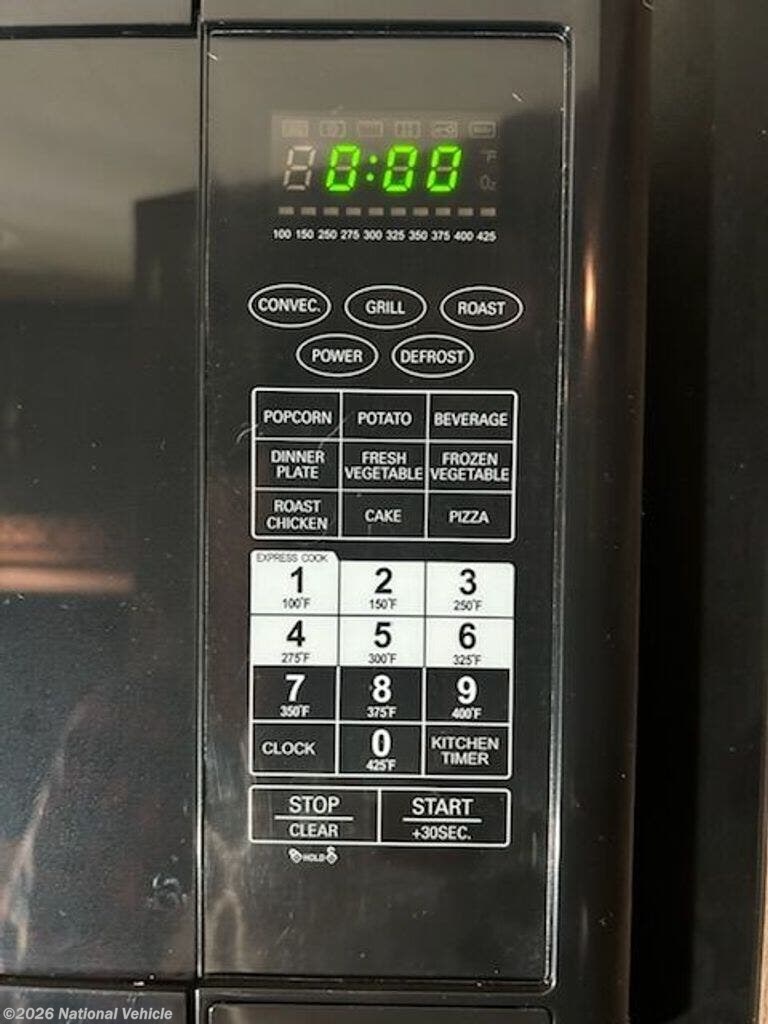 Inside, the thoughtfully designed floorplan maximizes comfort and functionality. A spacious slide-out expands the main living area, providing room for a comfortable dinette and lounge space. The fully equipped kitchen includes a three-burner cooktop, convection microwave, refrigerator, and ample cabinetry so you can easily prepare meals on the road. Recessed LED lighting and generous storage throughout create a bright, organized living environment.