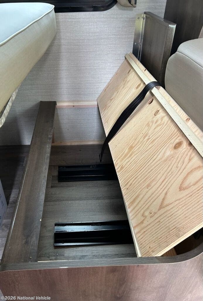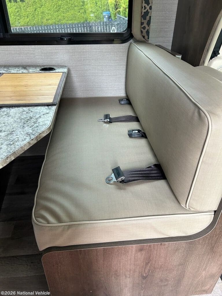 Dinette converts to bed with storage underneath, with 2 seat belts on each side
