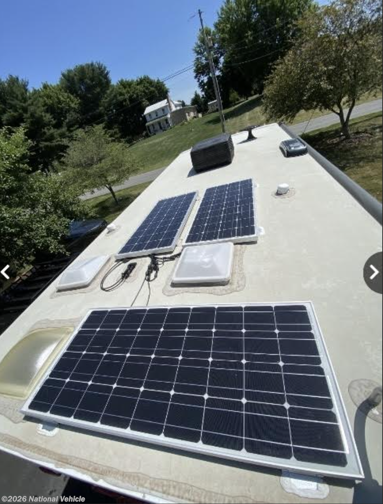 At the heart of its off-grid performance is a Goal Zero solar generator system, delivering 3,500 watts via three rooftop solar panels and a robust 12-volt power system, allowing extended boondocking with confidence. A 4,000-watt Onan gas generator provides additional power at the push of a button.