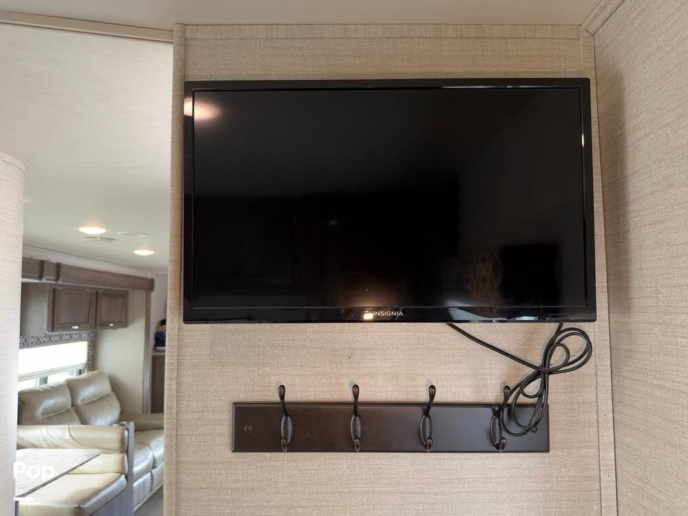 The kitchen is fully equipped, and there's a mounted smart TV on a swing-out arm for easy viewing from multiple spots.