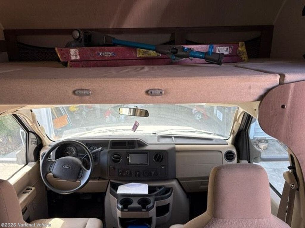 In the front of the motor home, you will also find a cab over bunk and an overhead TV.