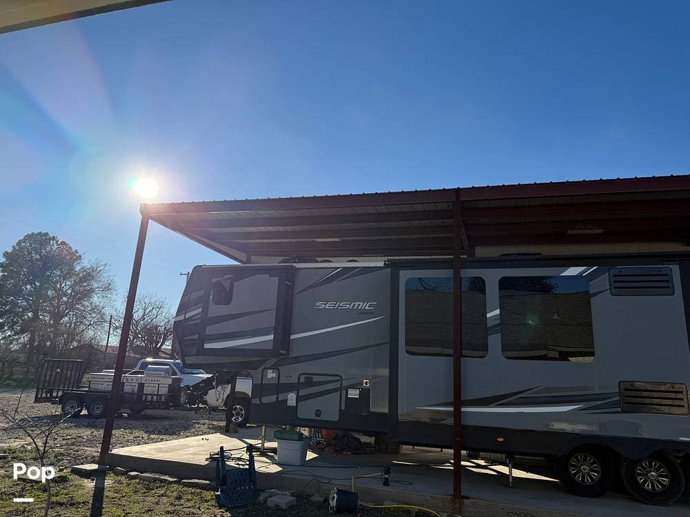 This 2018 Seismic 4212 is a 48' toy hauler in Emory, Texas.