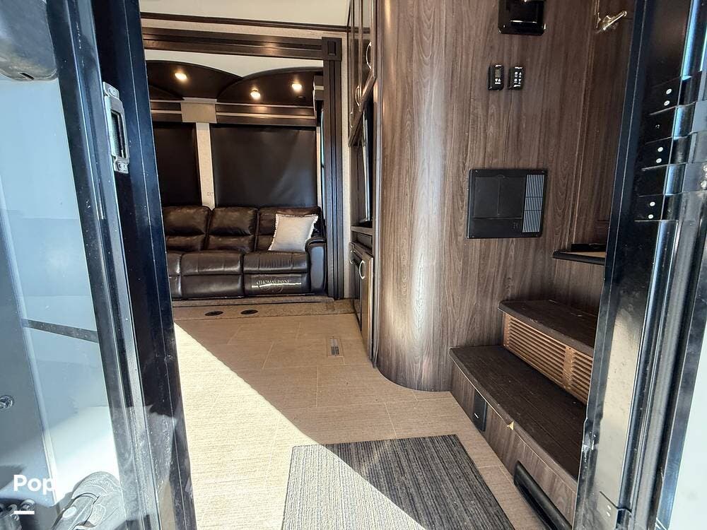 Manufactured initially at 44.9 feet, the seller had toy hauler extensions come to him and install a 3.5-foot garage extension, increasing the length of the garage to 15'3".