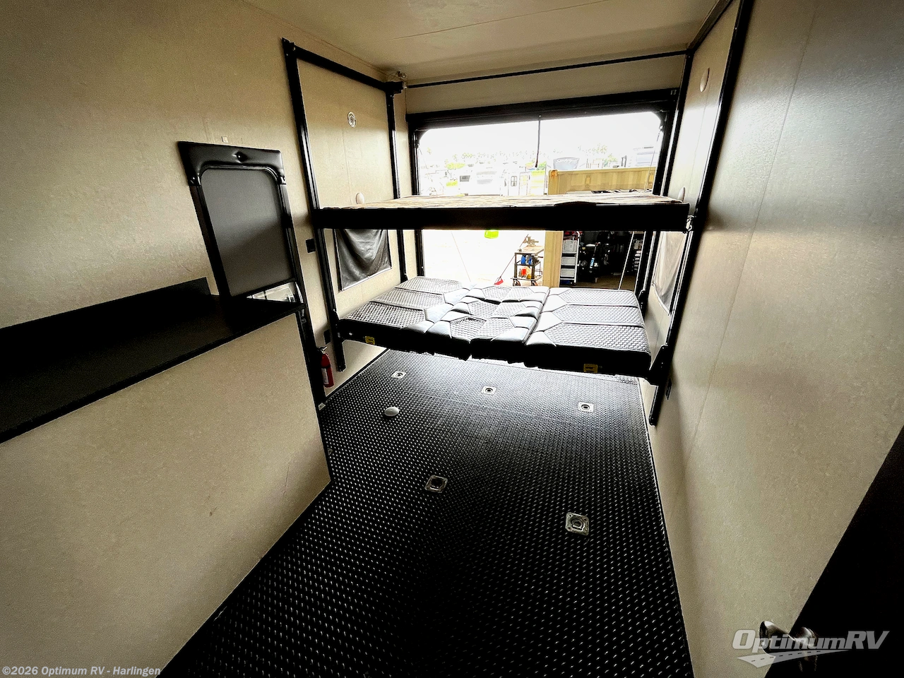 This Jayco Talon toy hauler is the epitome of functionality and style. Every inch of this unit has been carefully designed in order to maximize its usefulness, such as the U-shaped booth dinette which turns into a bed for extra sleeping space each night. One feature that you won't be able to find anywhere else is the Jayco-exclusive Simmons mattress in the front, private bedroom. Not only has the interior been constructed to its highest potential, but so has the exterior with the inclusion of an outdoor kitchen and shower. Two entry/exit doors allow you to decide whether or not you will enter directly into the attached cargo area or into the main living space.