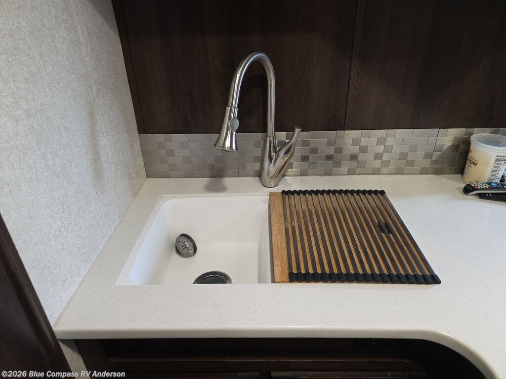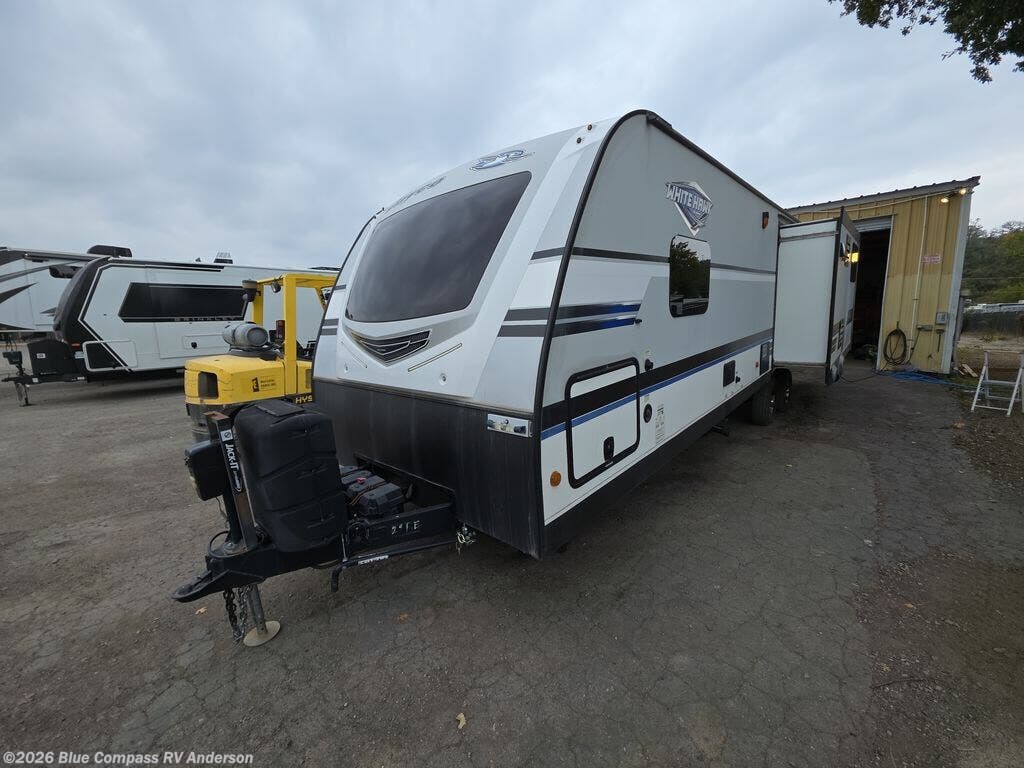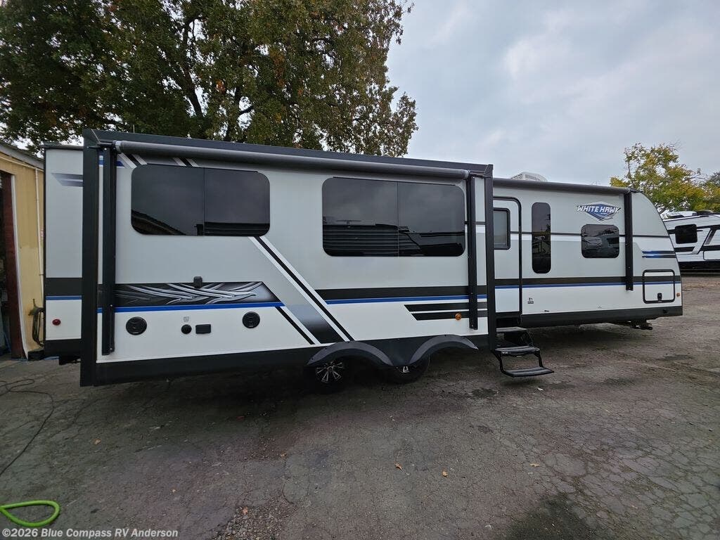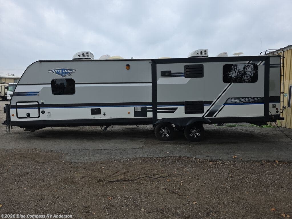 This White Hawk travel trailer is a luxurious and reliable option for any family seeking adventure on the open road. The addition of two slides in this trailer creates a large open-concept living area, and the 39" LED TV and fireplace that are located in the rear entertainment center make this the perfect space for your next movie night with the family. You won't even have to leave the fun to retrieve those delicious snacks you made because the kitchen, with the residential appliances, is right there in the same location.