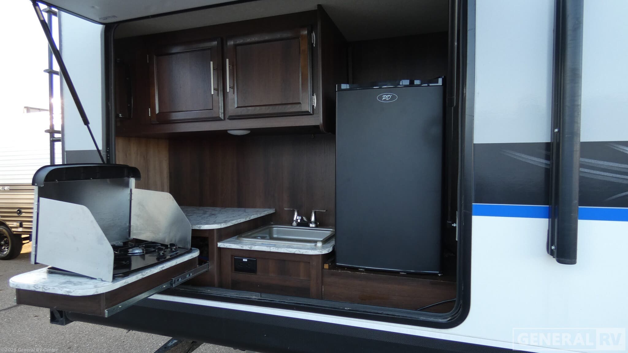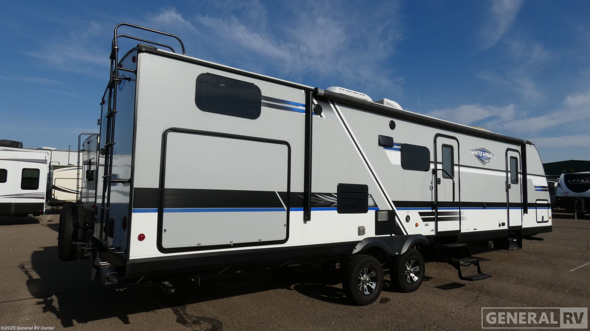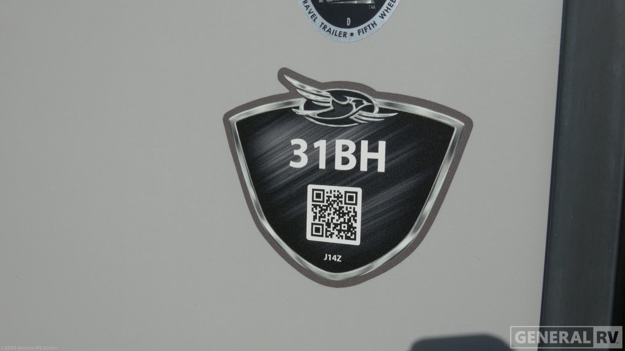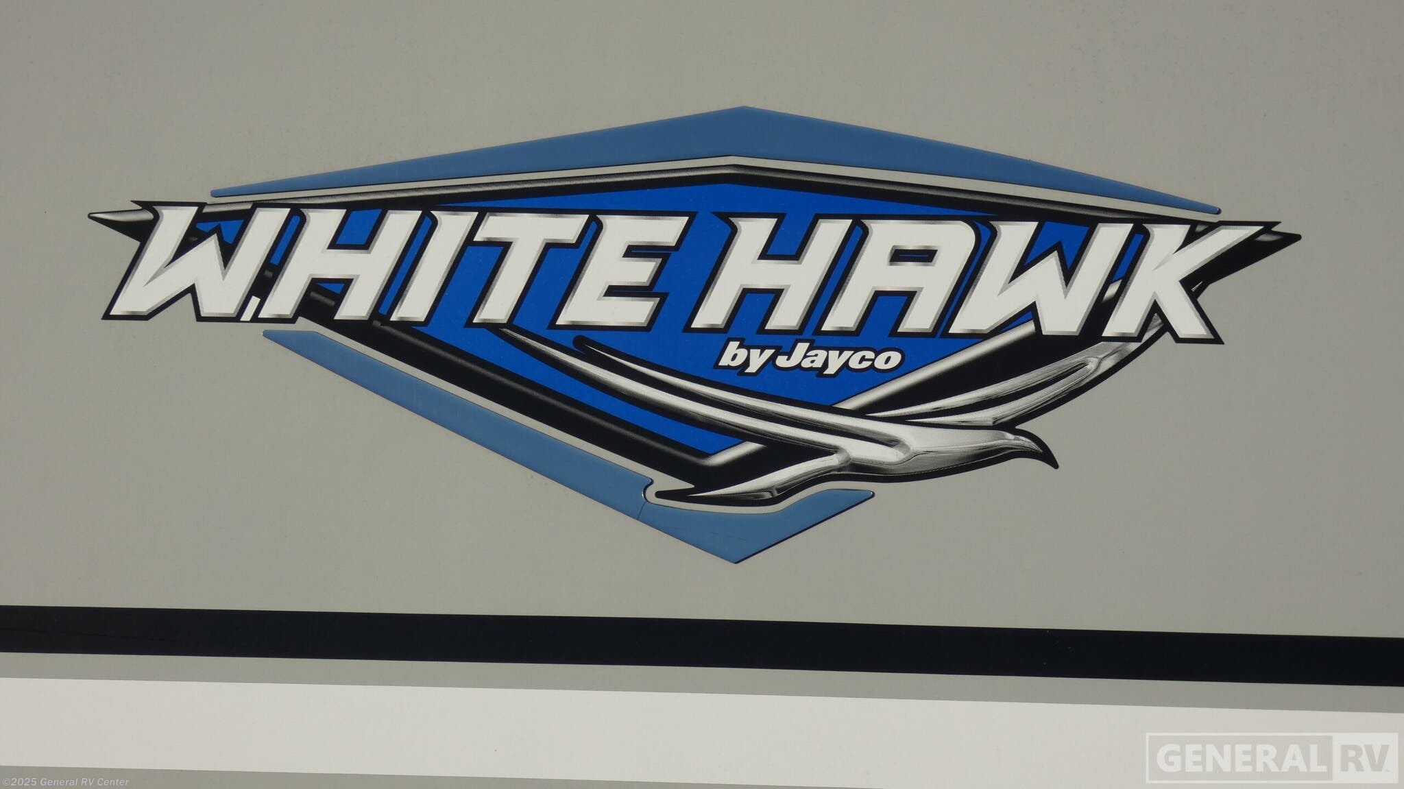 Jayco White Hawk 31BH travel trailer highlights: Private Bunkhouse Two Entry/Exit Doors Goodyear Tires Sleeps Nine Outdoor Kitchen Residential Appliances This White Hawk travel trailer is an all-inclusive trailer that gives you the benefits of on-the-road travel, while still fulfilling those desires for home. No one will need to be left behind when you decide to take this trailer on your next adventure because this unit can sleep nine people. The front private bedroom allows you to have a relaxing escape from the daily chaos, and the private bunkhouse in the rear of the trailer, which includes a tri-fold sofa and entertainment center, is a perfect place to send the kids on a rainy day when they are forced to remain indoors. If you must venture to the outdoor kitchen while it's raining, you can feel secure knowing that the 21' electric awning will protect you from any straying drops of water. Jayco has made certain that you will stand out from the crowd while traveling in the White Hawk by adding their Magnum Truss Roof System which can withstand up to 4,500 pounds, fifty percent more than the competition. The American-made Goodyear tires with self-adjusting electric brakes are the perfect base to the sleek and aerodynamic exterior. On top of all of that, the entire trailer is backed by the Jayco 2-year limited warranty so that you can travel with confidence during every adventure you take.