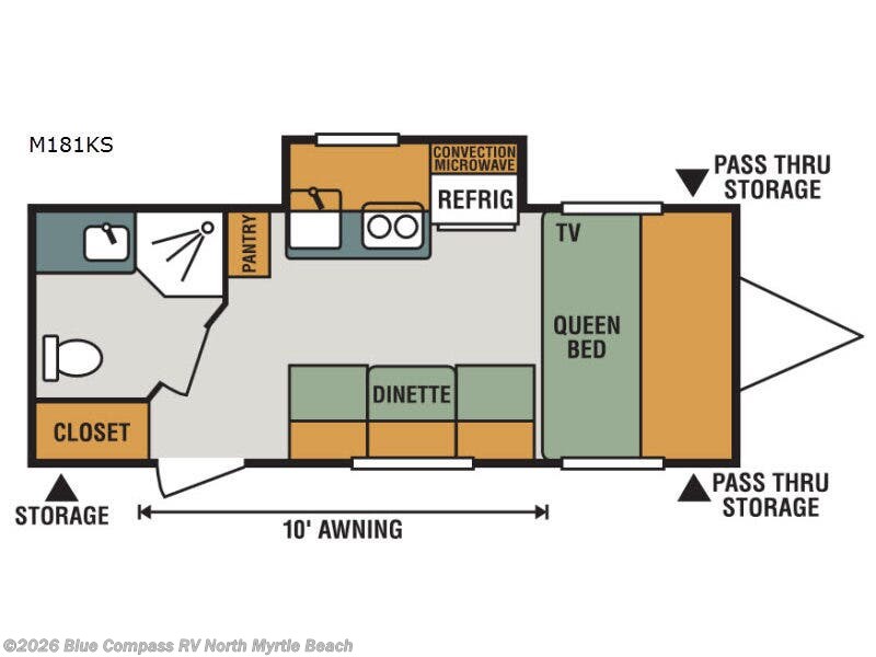 If you're looking to pack up and go on a weekend adventure, then the KZ Escape Mini M181KS is just what you need! It is a light weight travel trailer that provides a comfortable and easy camping experience. The pass through storage allows you to pack in all of your outdoor necessities. The layout of this trailer allows you to freely move around, as well as, enjoy the convenience of a convection microwave, dinette, and pantry. All of these glorious features can be encompassed with the LED lighting.
