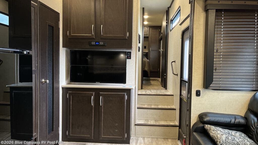 Are you ready to enjoy spending time outdoors riding the trails during the day and then resting comfortably inside of this Sidewinder toy hauler fifth wheel at night? In the 11' separate garage, you will find an area that has been prepped for a washer and dryer, and if you choose to add the washer and dryer, you can easily keep up with your laundry while you are away from home. The second entry door makes it easy to sneak out in the morning and hit the trails without waking up your family. In the spacious kitchen you will find a walk-in pantry and all of the amenities needed to create your favorite meals while you are away from home. The 20' electric awning with LED lights will provide plenty of shade from the sun, and in the evening find yourself being drawn to sit outside just a little bit longer to enjoy the sunset and evening camp fire.