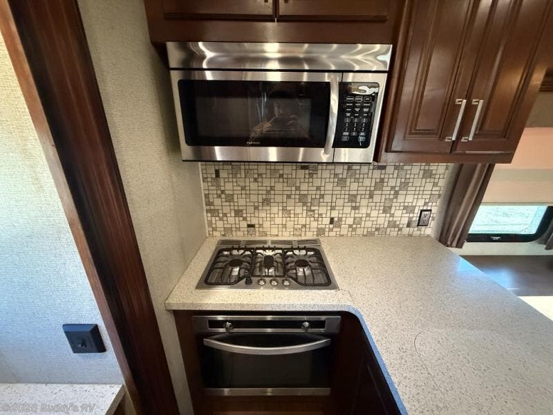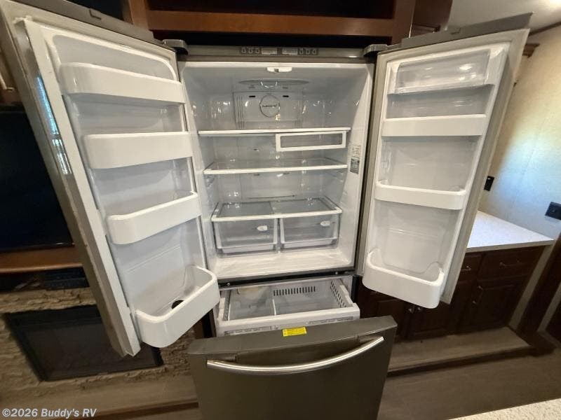 When you choose an Alpine fifth wheel by Keystone RV, you are choosing luxury. There are plenty of packages available to choose from such as the Upgraded Appliance Package with includes a Furrion RV Chef Collection kitchen, a 30” convection oven/microwave, plus extra deep, fully extendable drawers and more. The Deluxe Solid Surface Package features solid surface countertops and sink covers, stainless steel extra deep sink, high rise kitchen faucet, and maximized kitchen storage with more drawers. The Super Cinema Package has a 50” LED TV, Furrion sound system, outside speakers, digital TV antenna, and dual cable & satellite hookups. With the North Face Insulation Package (ALPS Package) you will find class “A” style slam baggage doors, electric one-touch awning, insulated slide floors and more. Finally, the Whisper Air Bundle (Chateau Package) has two 15,000 A/C conditioners, digital “smart” thermostat with dual zone capability, one 16,500 BTU heat pump, and a fully programmable dual zone temperature control.