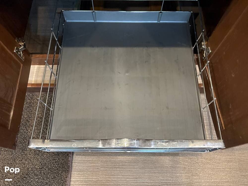 This rear living layout, featuring three slides, is spacious and comfortably accommodates four people between the king-size bed and the fold-out sleeper sofa. It also offers a wealth of storage both inside and outside.