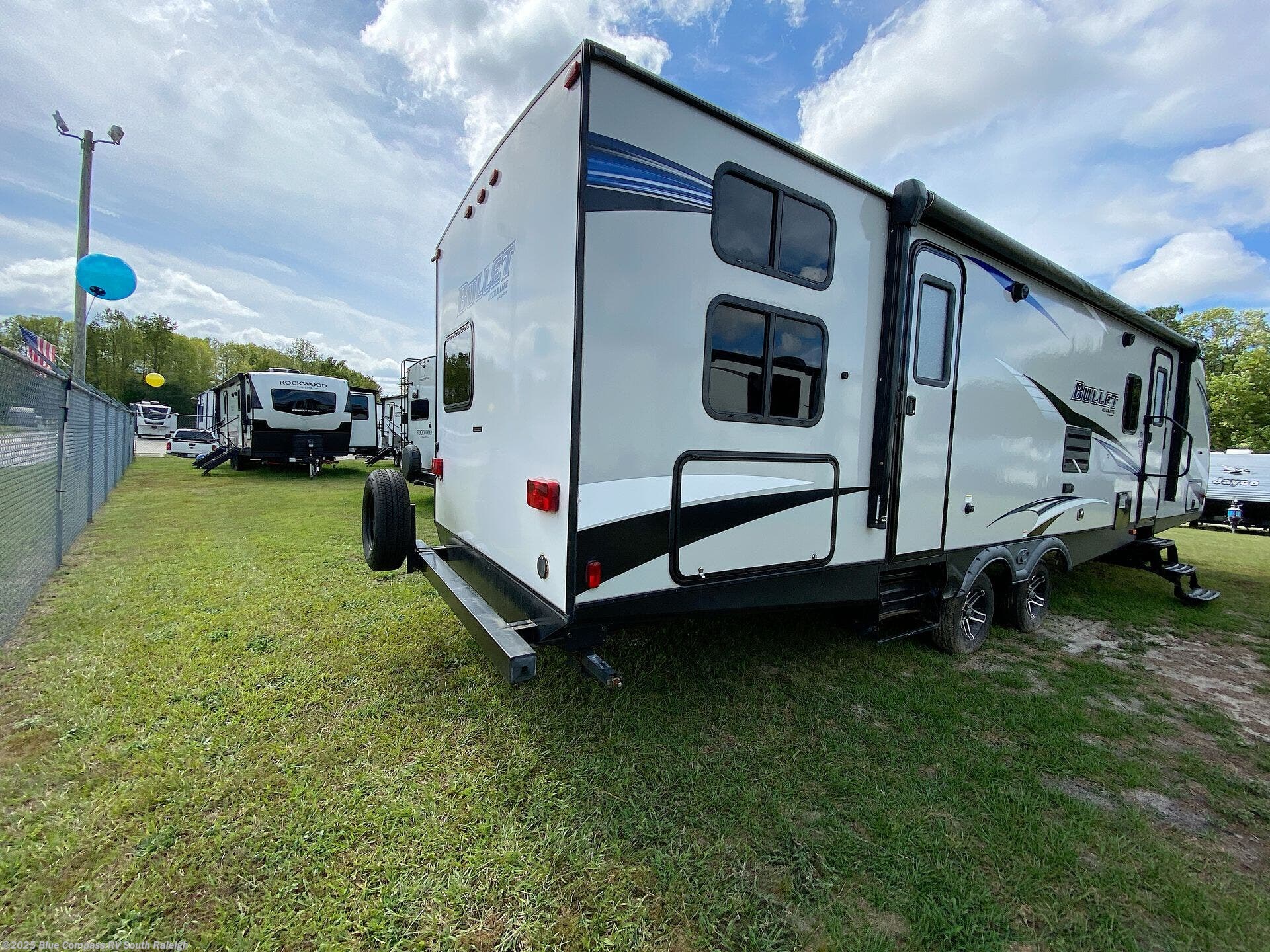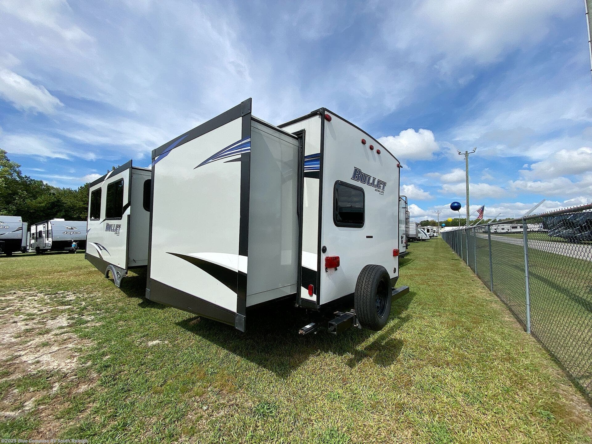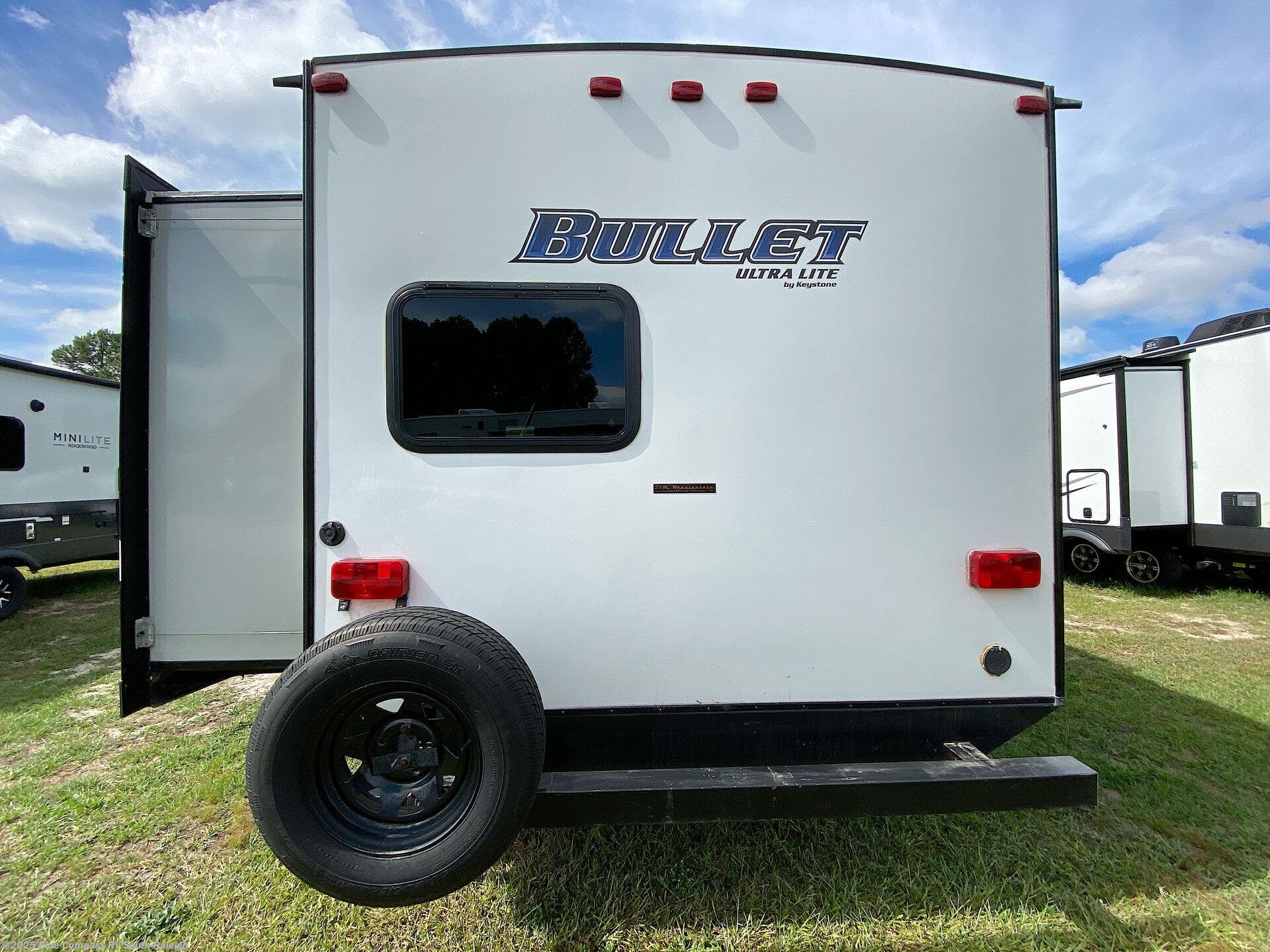 Get ready to embark on a camping trip of a lifetime with the Keystone Bullet travel trailers. These models are easy to tow behind most crossovers, cars, and trucks. The exterior is sleek and smooth and features aluminum framed front, rear, and side walls, a Darco moisture barrier, plus a one piece TPO roof. There is also a 1/4" ABS enclosed underbelly. Inside each model you will find residential style furniture, night shades in the living area, and LED lights. In the bedroom there is an upgraded foam mattress, mirrored wardrobes, under bed storage, plus full blackout window treatments. You will also enjoy the following packages: Exterior Camping Package, Interior Camping Package, and the Thermal Package.