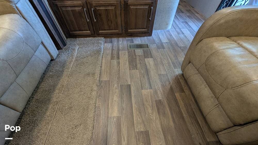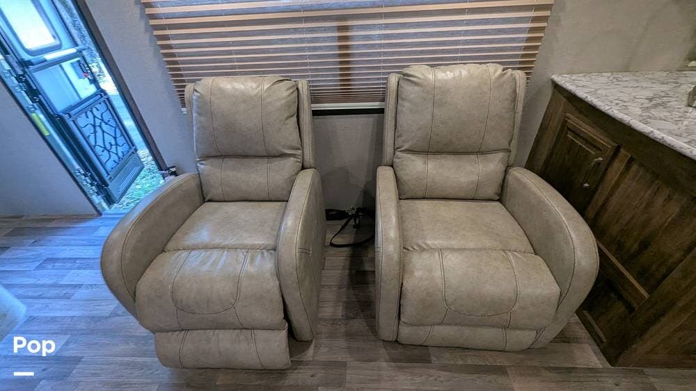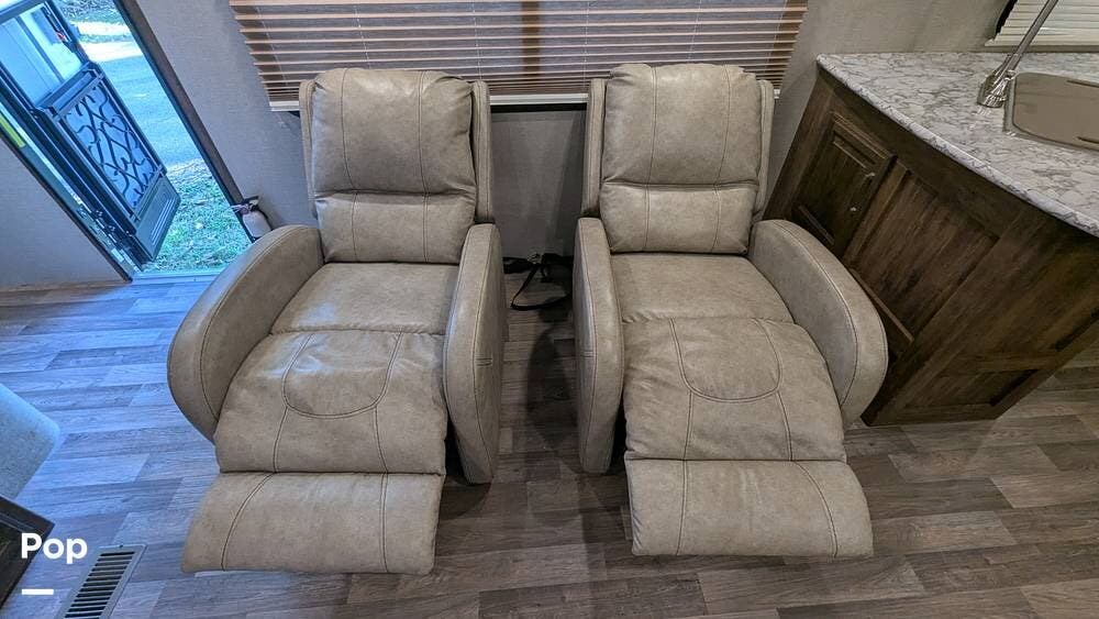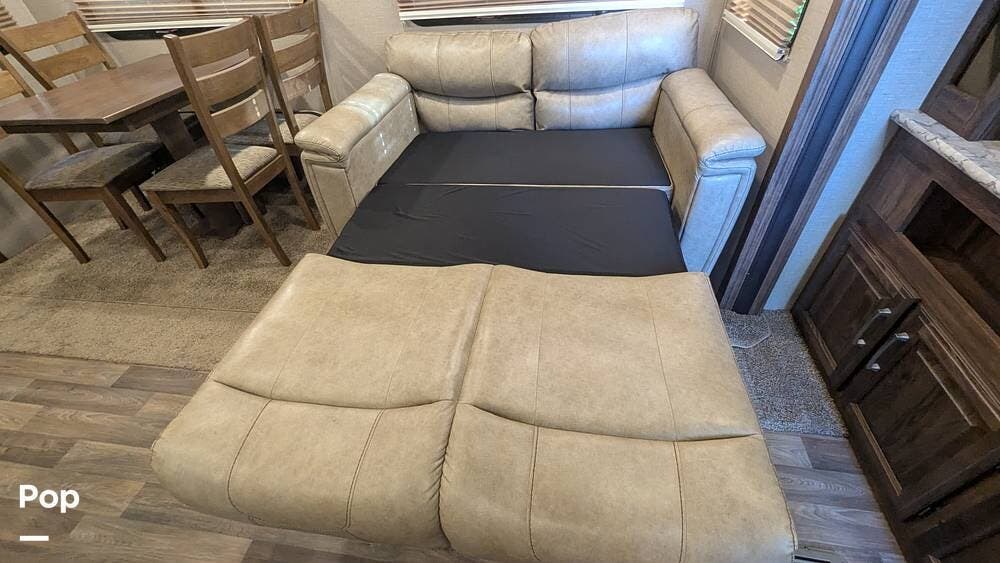 This Cougar is equipped with a queen-size bed, tri-fold sleeper sofa, and two recliners that sleep up to 6 guests comfortably.