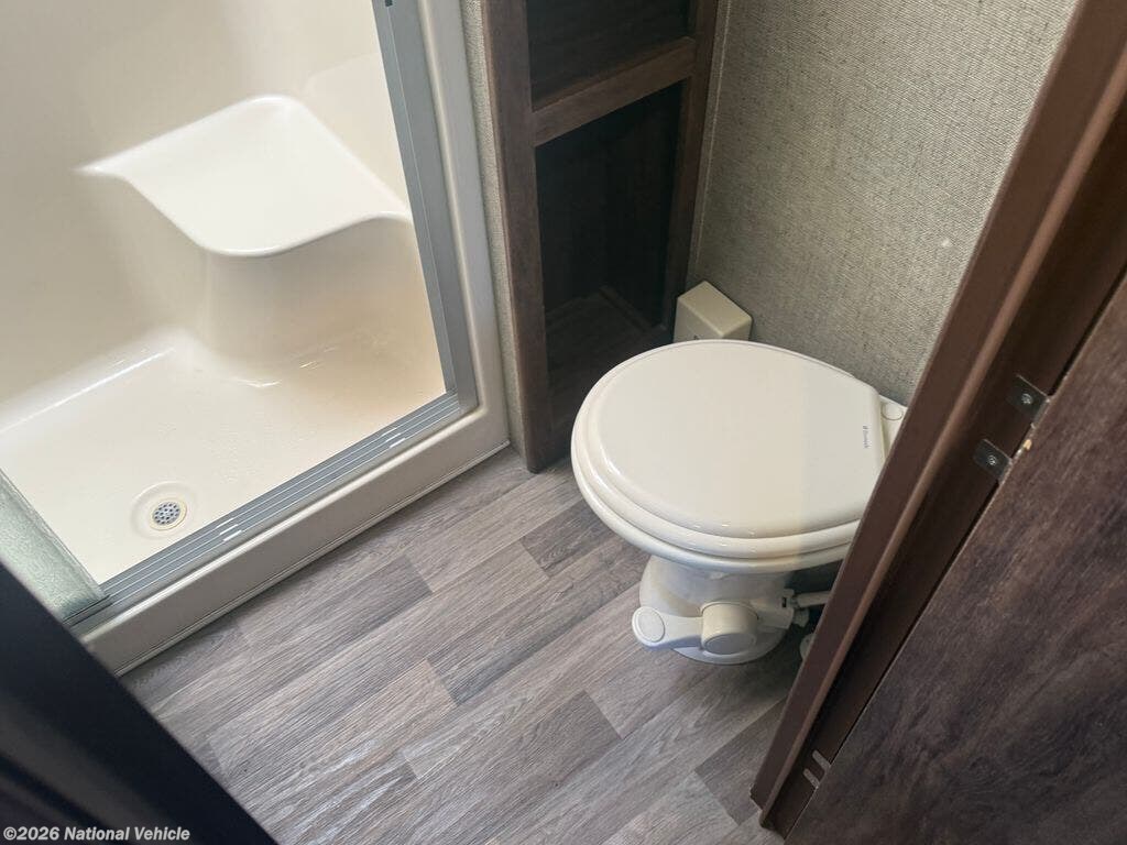 Step inside and you?re greeted by a spacious rear living area with opposing slide-outs that create an open, inviting environment. Relax in the theater seating or on the sleeper sofa while enjoying the entertainment center, or gather around the free-standing dinette for meals and conversation. Large panoramic windows bring in natural light, giving the space a bright and comfortable feel.