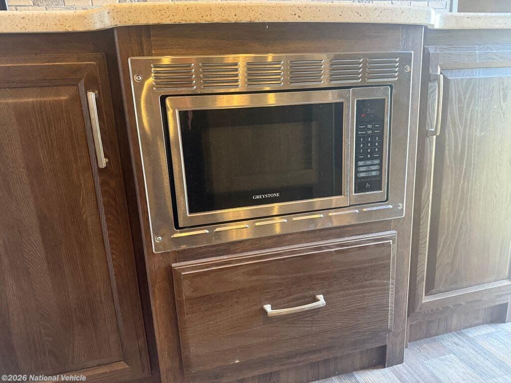 On the exterior, enjoy features like a power awning, pass-through storage, outdoor kitchen, and power leveling system-making setup and outdoor living easier than ever.