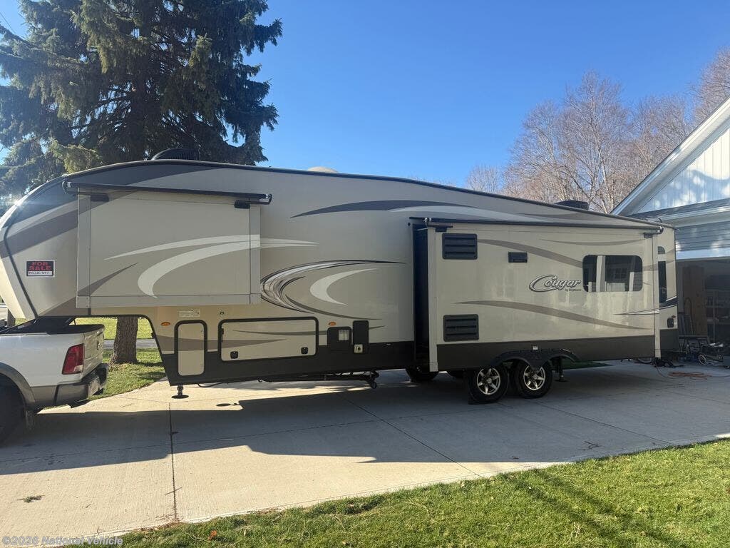 2018 Keystone Cougar 327RLK 37' 2" Fifth Wheel. 3 Slide Outs with Toppers, Awning, Sleeps 4, 2 A/C Units, Auto Leveling System.