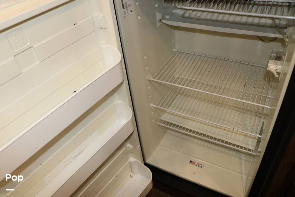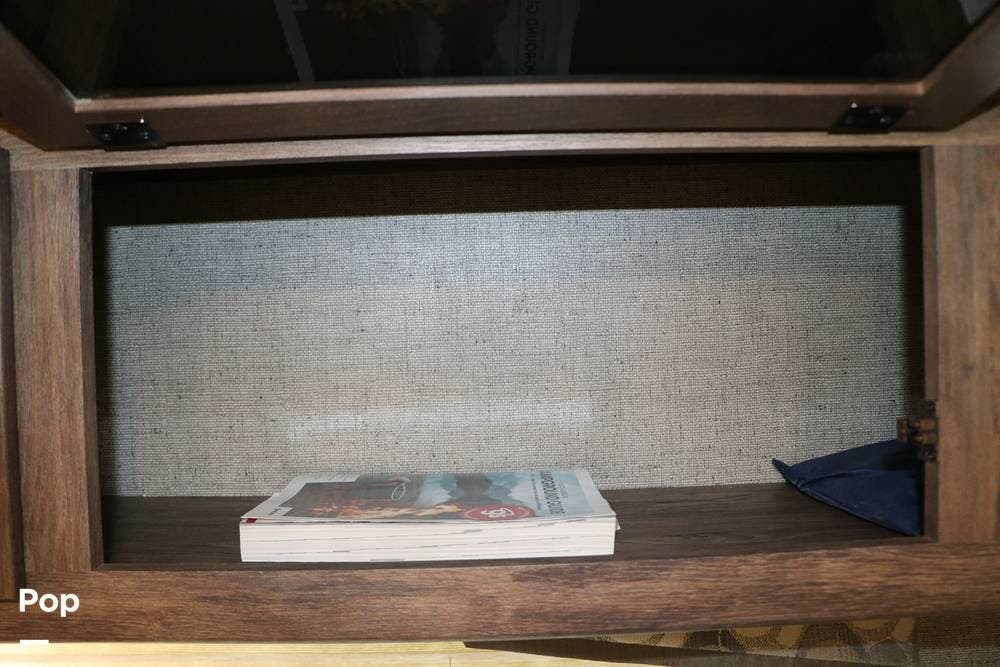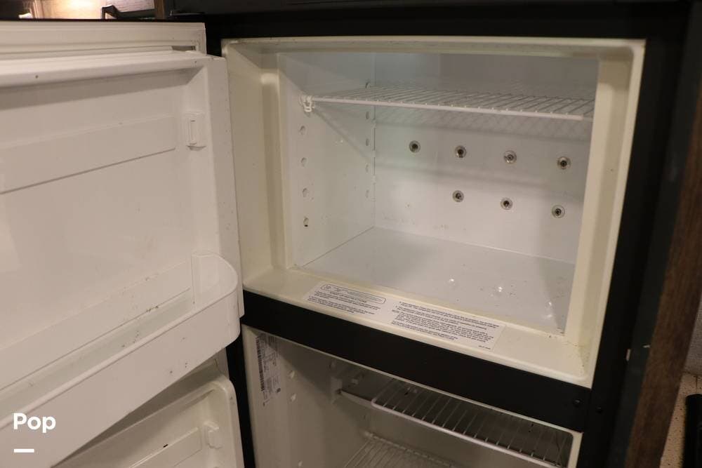 The galley is fully equipped with microwave over range hood with fan, vent & light - over the three-burner gas stove top with conventional gas oven below. The refrigerator freezer works off of propane or electric power and has a separate door for the freezer compartment. The large kitchen island with a double kitchen sink and goose neck faucet with drain board or matching cover to the laminate countertop. The side board has lots of additional storage and a place for your coffee maker and provides a great place for serving food when entertaining.