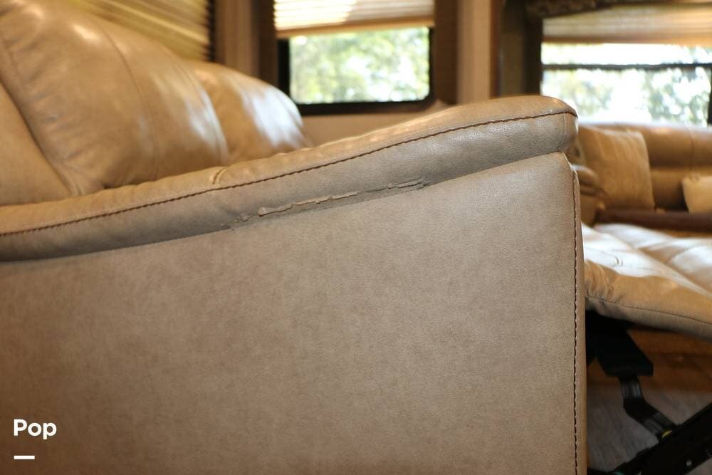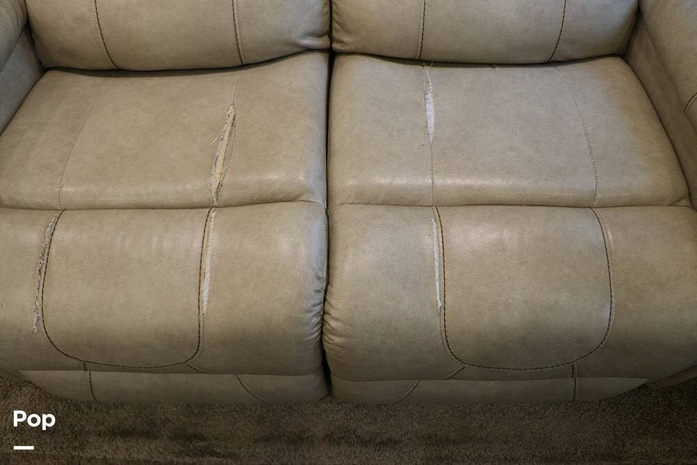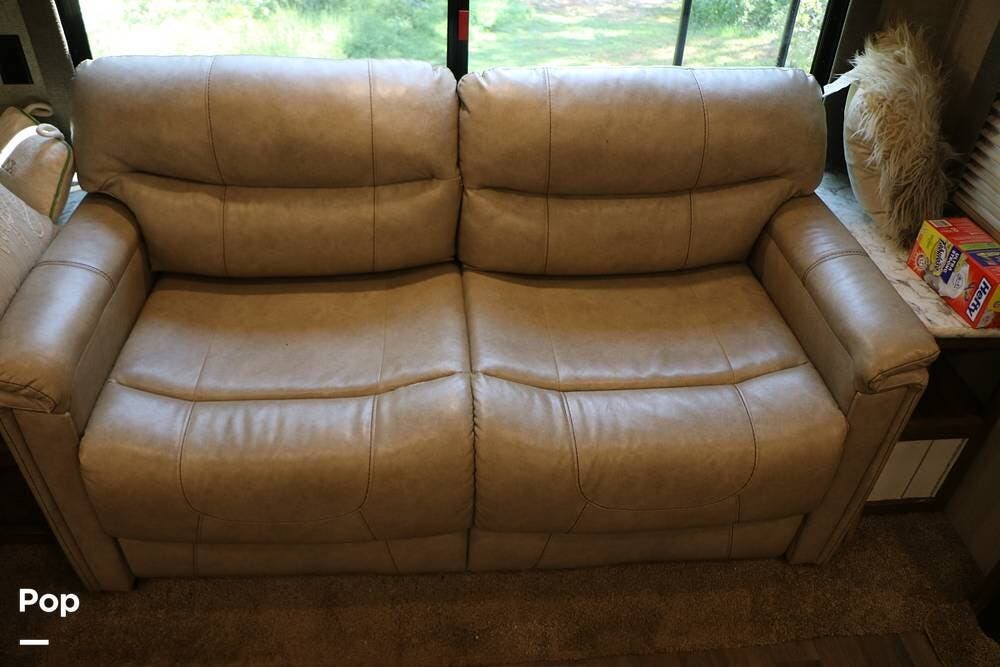 The two recliners are directly opposite the entertainment center. The sleeper sofa quickly converts into a second sleeping area, and the dining table with chairs provides a great place for dining, games, or working on the road.