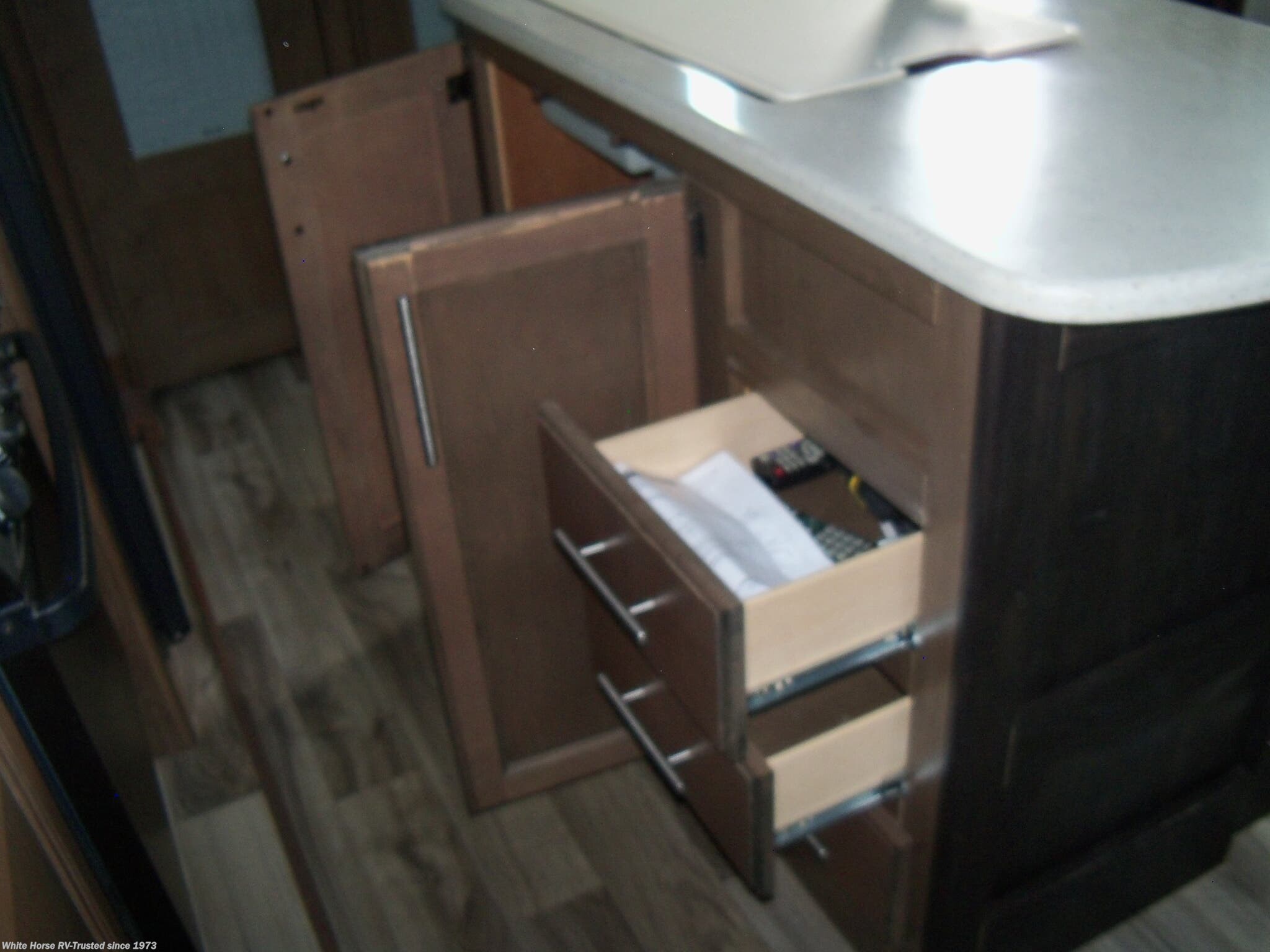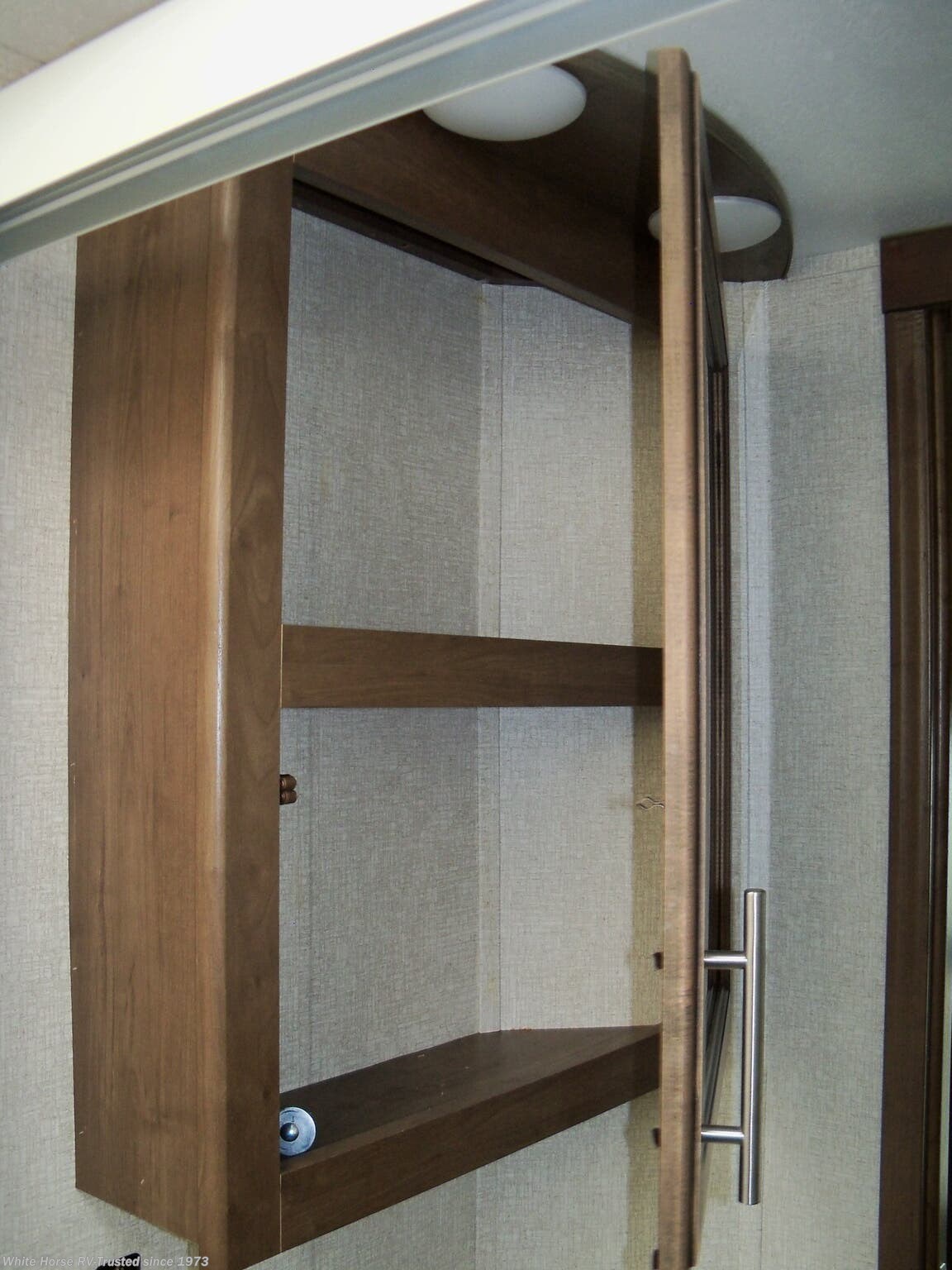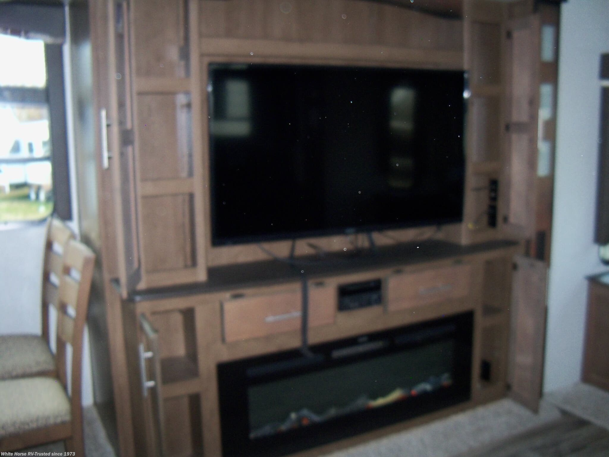 - Interior Features: Furnace, Microwave, 12V Refrigerator, Stove, Water Heater, A/C, Fantastic Fan, Fireplace, TV, Surround Sound, Free Standing Dinette with Chairs, Medicine Cabinet, Overhead Cabinetry