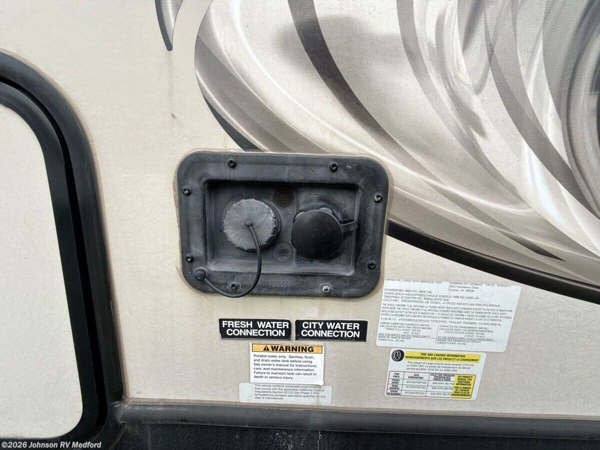 Features Include: Anniversary, Camping in Style, LED Indoor Lighting, Tinted Safety Glass, Seamless Countertops, 8cf Refrigerator, Systems Center, Outdoor Speakers, Solar Prep, Two 30# LP Bottles, 15k Ducted AC, 35k Ducted Furnace, Enclosed Dump Valves, Full Size Spare Tire, Champagne Sidewalls, Seamless Roofing, Zero Degree Rated, Power Tongue Jack, Awning LED Lighting