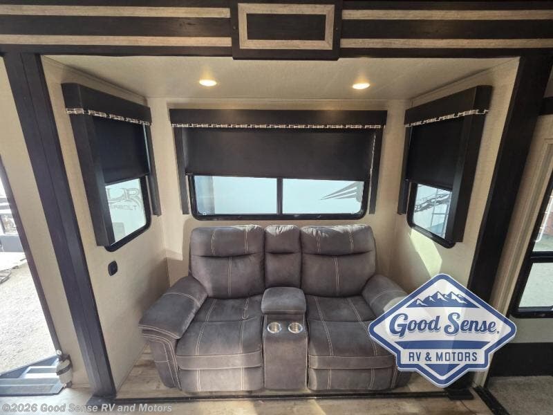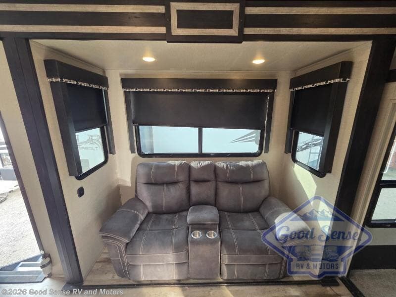 Fuzion toy hauler fifth wheels are "More than a Garage." They give you a place to store your toys while you are traveling yet give you the comforts of home. All of the countertops are solid surfaces, so cleanup is a breeze and all the storage in these units are solid cherry hardwood. The things that set Fuzion apart is the 5K Interlock System that they have created. This system is the toughest tie-down around! Each tie is welded into the metal which makes each tie down virtually unbreakable and can hold up to 5,000 lbs. Along with the tie-down system, you also have Dexter EZ Lube Axles which allow grease to flow to both inner and outer bearings easily. The In-Command RV automation and control system is something you don’t want to miss out on. This system controls all the lights, the 6pt Hydraulic Level-Up System, the awning, plus so much more all within an app on your phone. You don't need to settle, choose the "Hottest Brand in the Industry."