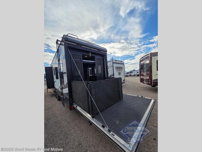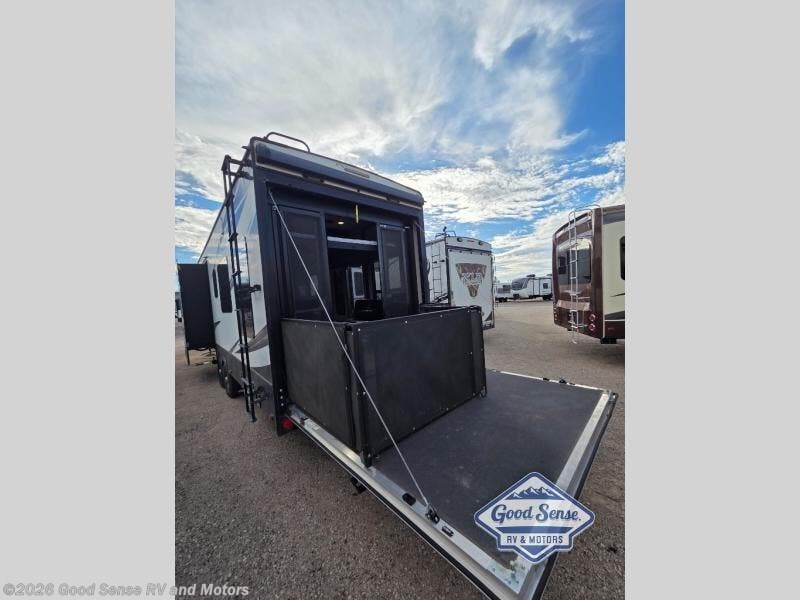 This 371 Keystone Fuzion toy hauler fifth wheel is exactly what you need for a comfortable and convenient get-a-way to the playground of your choice. That's right, pack up the big toys and head to the trails, dunes, or lakeside retreat! Close to running out of gas? Use the 30 gallon fuel tank to refuel! Everyone will love using this unit whether you have great weather or it's starting to look a little gloomy outside. Play until you can't play anymore and then take a rest on any of the sleeping arrangements that are provided. Check out this unit today!