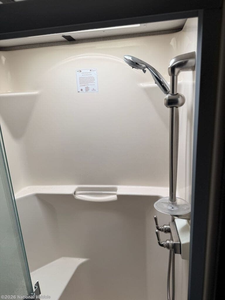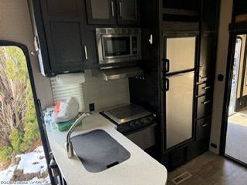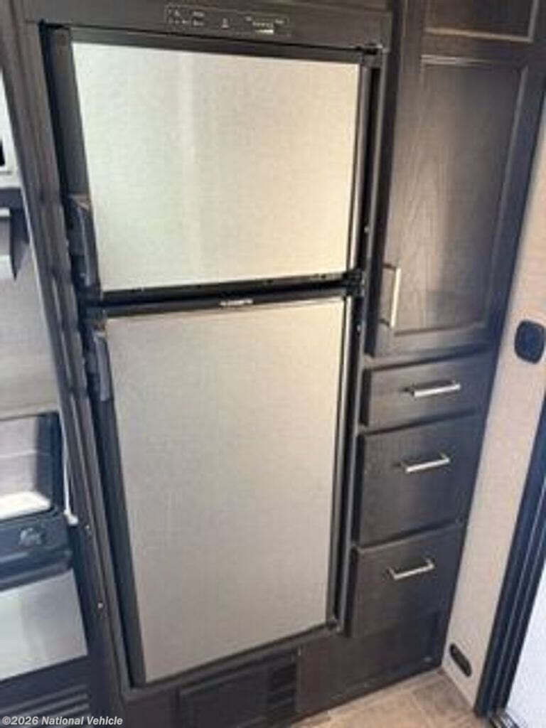 Inside, you?ll find a well-appointed living area and kitchen featuring solid countertops, an 8 cu. ft. refrigerator, three-burner cooktop, and ample storage. The residential queen master bedroom, large shower, and modern entertainment system ensure comfort after a day of adventure.