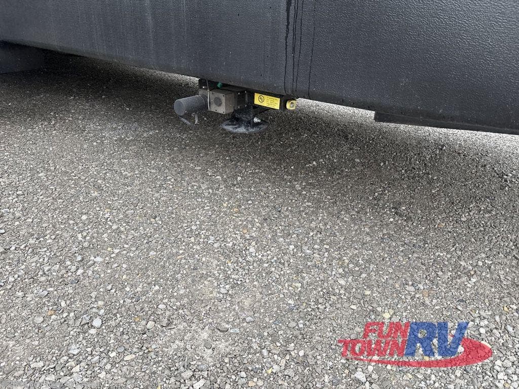 Before you enter model 332BH, check out the outdoor entertainment center with a fridge. You can finally watch a movie under the stars! Inside you have a front bedroom with a queen bed and dual wardrobes which will hold all of your clothing items during your vacation. The rear of this unit has a bunkhouse with a bunk above two wardrobes and an entertainment center. The other bunk is above a cube sofa which can also be used for sleeping at night. You will enjoy the kitchen island for preparing food and cleaning up after you are finished. The dinette is the perfect place for eating your meals with loved ones.