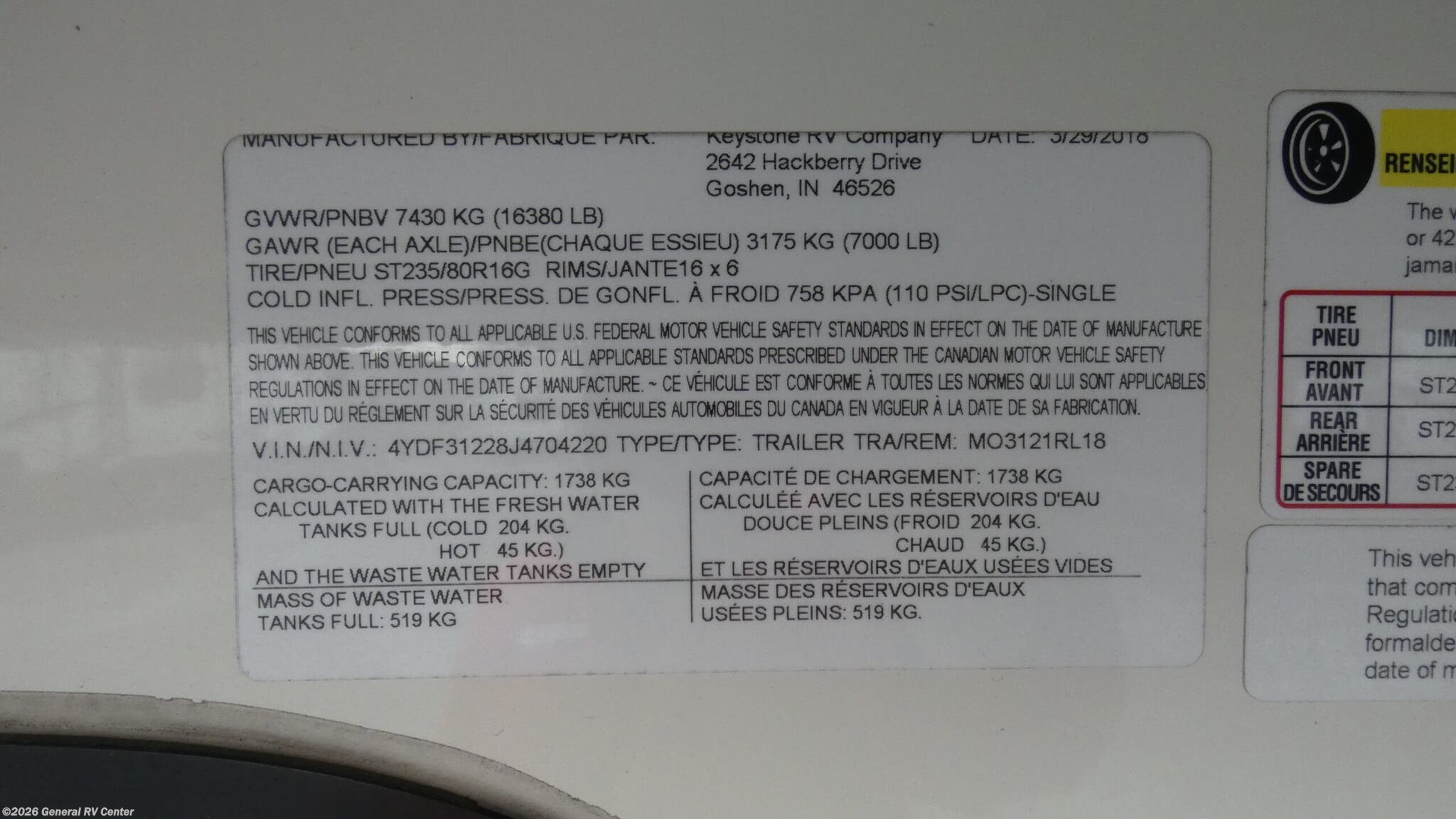 Request More Info on this 2018 Keystone Montana 3121RL Offered for sale by General RV Center