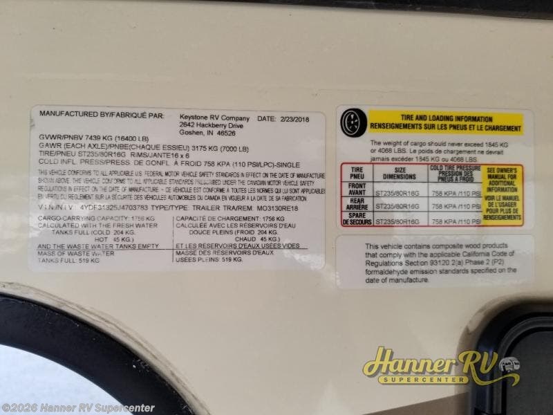 Request More Info on this 2018 Keystone Montana 3130RE Offered for sale by Hanner RV Supercenter