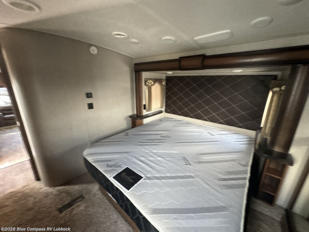 Step inside and see a spacious gathering place to the left of the door. There are dual slide outs that offer increased floor space giving you an at-home feel. There is a three burner range with convection microwave oven, a double door refrigerator, and an entertainment center with HDTV and fireplace in the slide out to the left of the entry door. You will also find a convenient kitchen island that offers counter food prep space and double sinks for cleaning up. The overhead cabinets, and lower cupboards and drawers will make storing your dishes easy too.