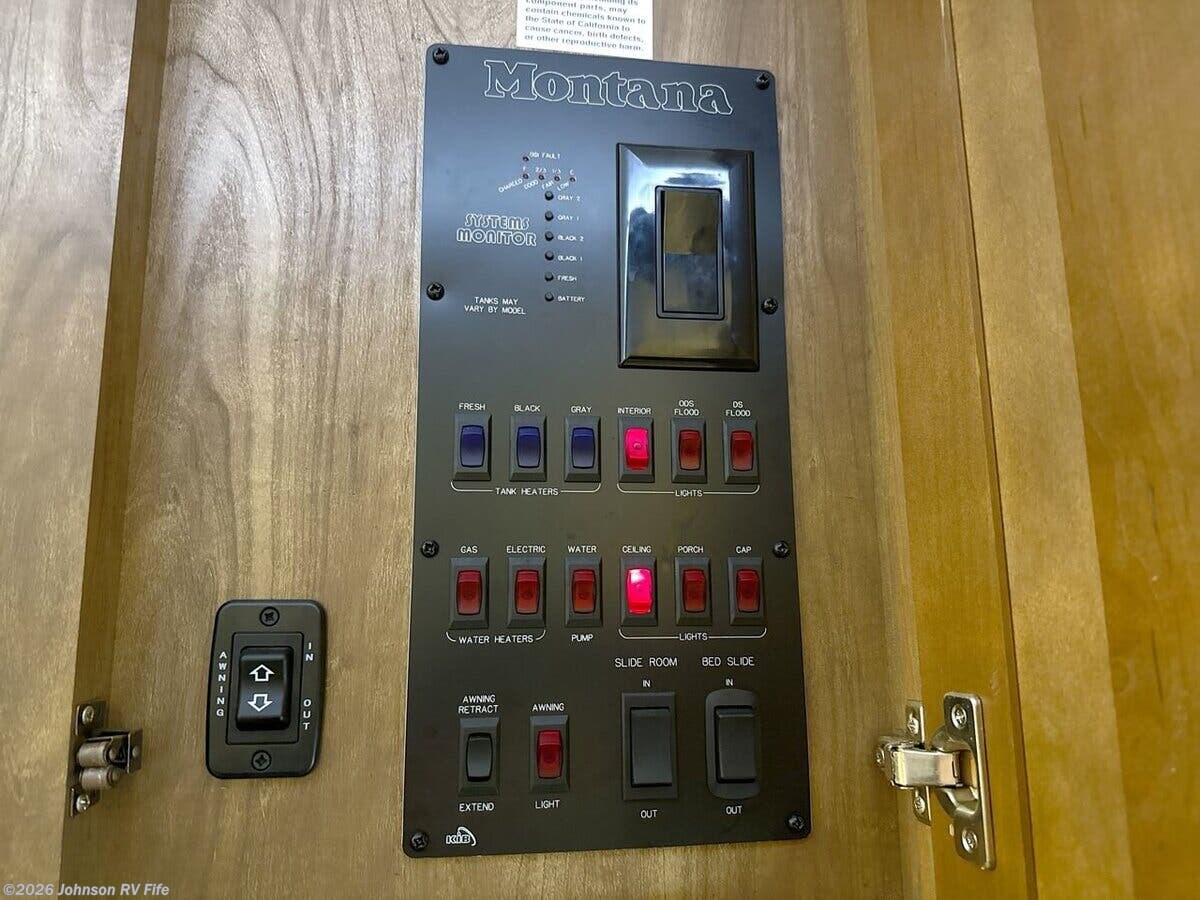 The 2018 Keystone Montana 3160RL is a luxurious fifth-wheel RV designed for those who seek comfort and convenience on the road. This model is perfect for both short getaways and extended stays, offering a home-like experience with its well-thought-out features and amenities. Exterior Features: - The RV is built with a durable, powder-coated I-beam frame and features a painted front cap for added style and protection. - It includes a rear roof ladder for easy access to the roof, which is constructed with 5-inch arch roof rafters. - The seamless rotocast holding tanks and laminate sidewall construction ensure durability and longevity. - Equipped with a Max Turn and Hitch Vision system, it provides ease of maneuverability. - The RV rides on 7000# Dexter axles with EZ Lube hubs and self-adjusting brakes, complemented by 16-inch 8-lug aluminum wheels and an undermount spare tire. - For added convenience, it has slam latch baggage doors and a drop frame pass-through storage area. Interior Living Spaces: - The interior boasts a vaulted ceiling with LED lighting and crown molding, creating a spacious and elegant atmosphere. - Armstrong flooring and Shaw carpeting add to the comfort and style of the living area. - Large tinted safety glass windows with roller shades provide privacy and natural light. - The living area features a hide-a-bed sofa and power recliner theater seats, perfect for relaxation. - A residential ceiling fan enhances air circulation, while a central vacuum system makes cleaning a breeze. Kitchen and Dining: - The kitchen is equipped with stainless steel appliances, including an 18cf 4-door refrigerator, a Chef Collection range with oven, and a 30-inch convection microwave. - Solid surface countertops, a tumbled stone backsplash, and a stainless steel sink with solid surface sink covers add to the kitchen's functionality and aesthetics. - Full extension drawer guides, cabinet hidden hinges, and a pull-out trash can offer ample storage and convenience. - A power vent fan with a rain sensor ensures proper ventilation. Sleeping Accommodations: - The bedroom features a queen bed (60x80) with a high-density mattress and a quilted headboard for a restful night's sleep. - Bedside nightstands, reading lights, and a wood TV cabinet with a 32-inch LED HD TV provide comfort and entertainment. - Additional storage is available with underbed storage and a wardrobe, and the room is prepped for a washer and dryer. Bathroom Amenities: - The bathroom includes a seamless fiberglass shower with a skylight, a porcelain foot flush toilet, and a solid surface countertop with an undermount vanity sink. - A power vent fan with a rain sensor ensures proper ventilation and comfort. Mechanical and Utility Features: - The RV is equipped with a battery disconnect switch, color-coded wiring, and a 50-amp service cord for electrical needs. - It features a 75-amp converter, a residential heat duct system, and a whisper-quiet AC system with a total of 30k AC and a 16.5k heat pump. - The RV is prepared for a third AC unit and includes a 35k furnace, 12v heated tanks, and a 12-gallon DSI hot water heater. - A heated central convenience center, winterization kit, water heater bypass, and black tank flush add to the RV's practicality. - An outdoor shower with a quick connect hose provides additional convenience for outdoor activities. The 2018 Keystone Montana 3160RL is a well-equipped and thoughtfully designed RV that offers a comfortable and luxurious experience for travelers. Whether you're exploring the great outdoors or enjoying a quiet retreat, this RV is ready to meet your needs. ???