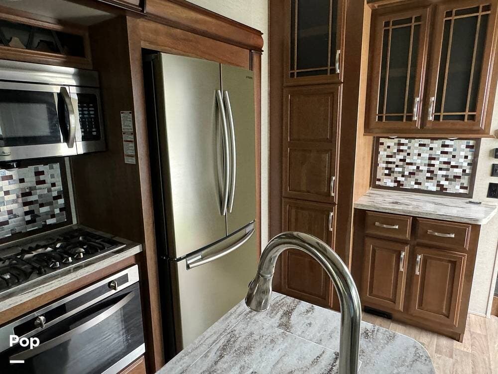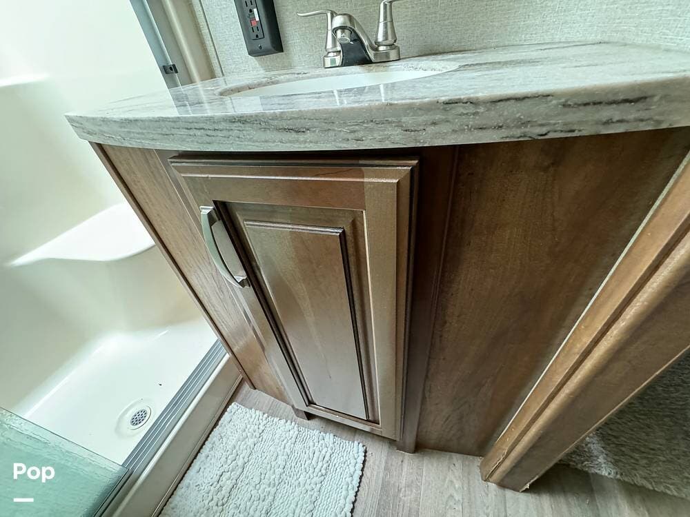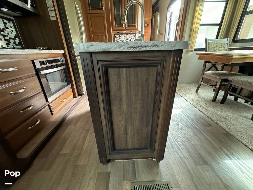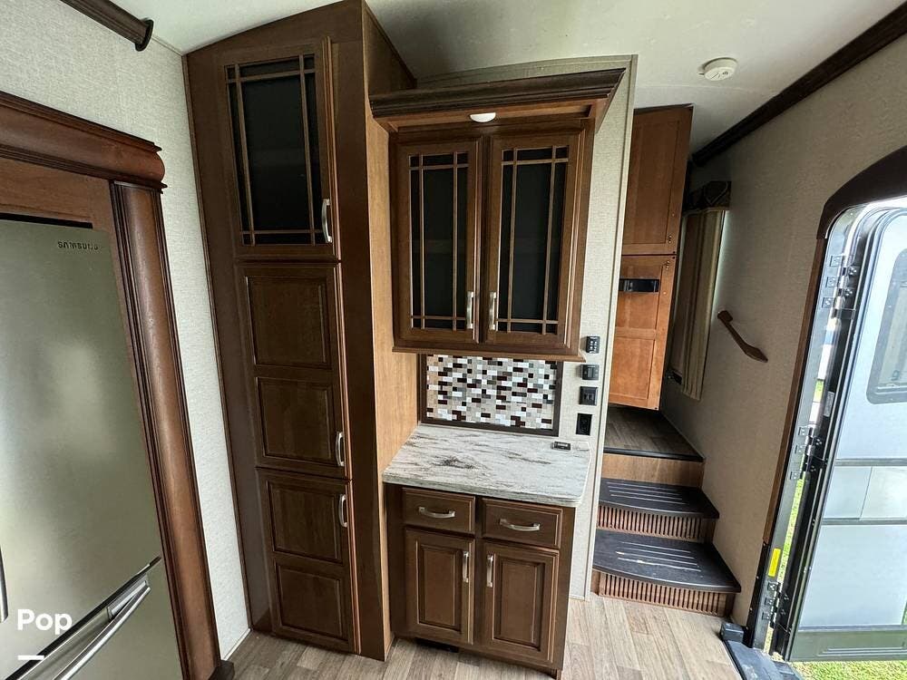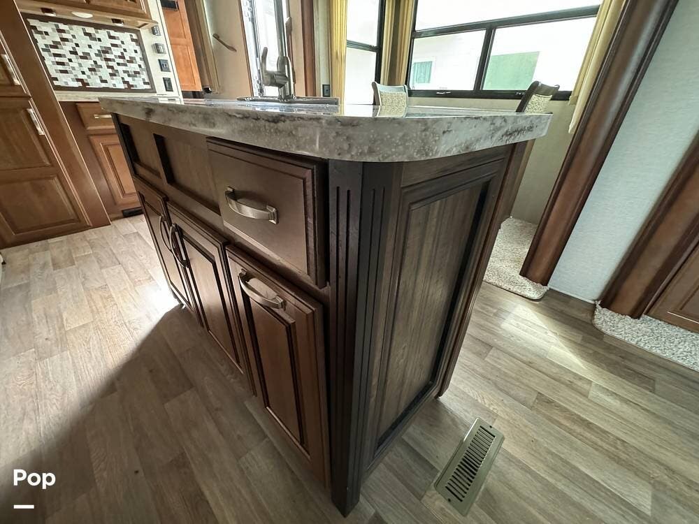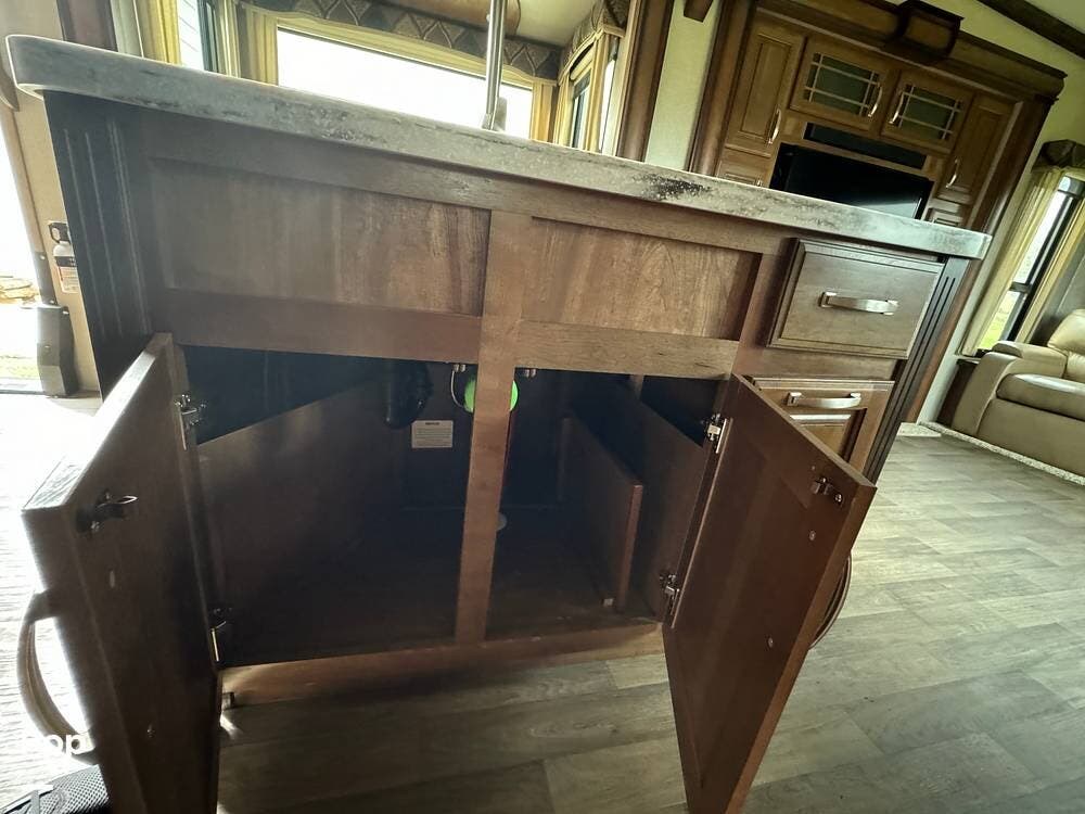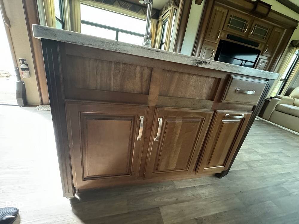 Throughout the RV, one will note the premium cabinetry and high-end finishes.