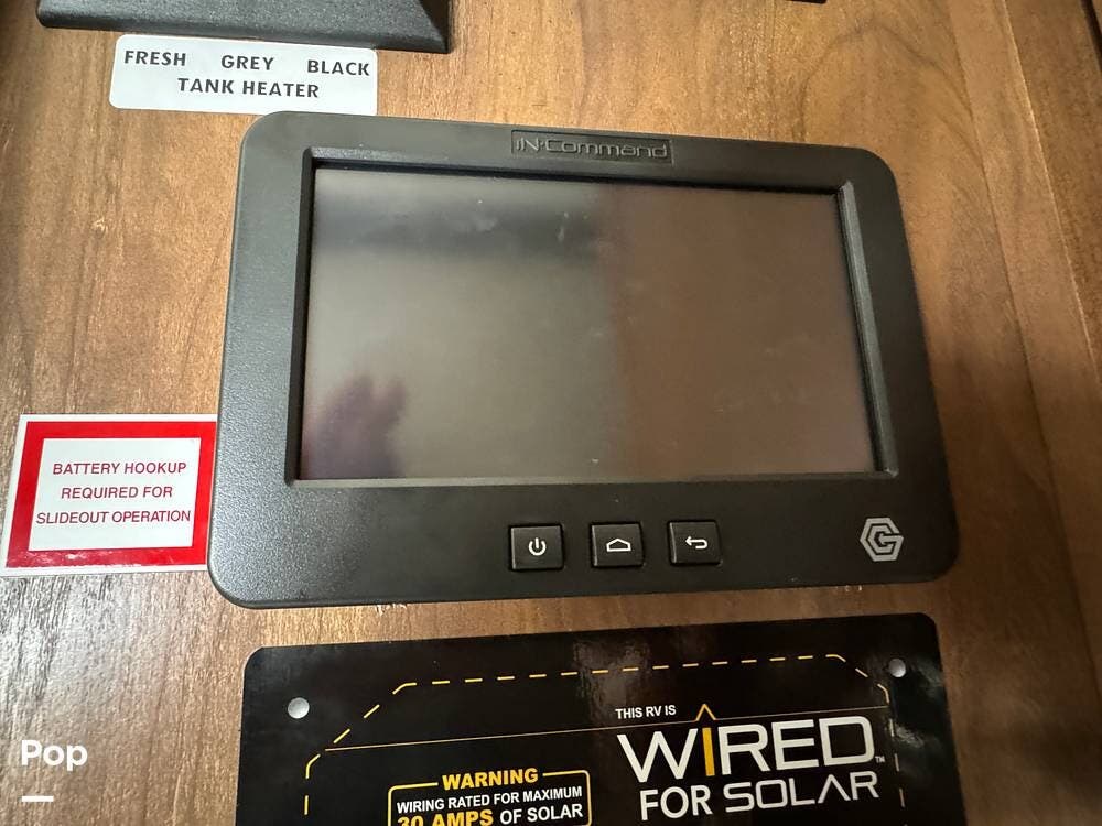 The RV is equipped with "Command Center": a touch screen control center system.