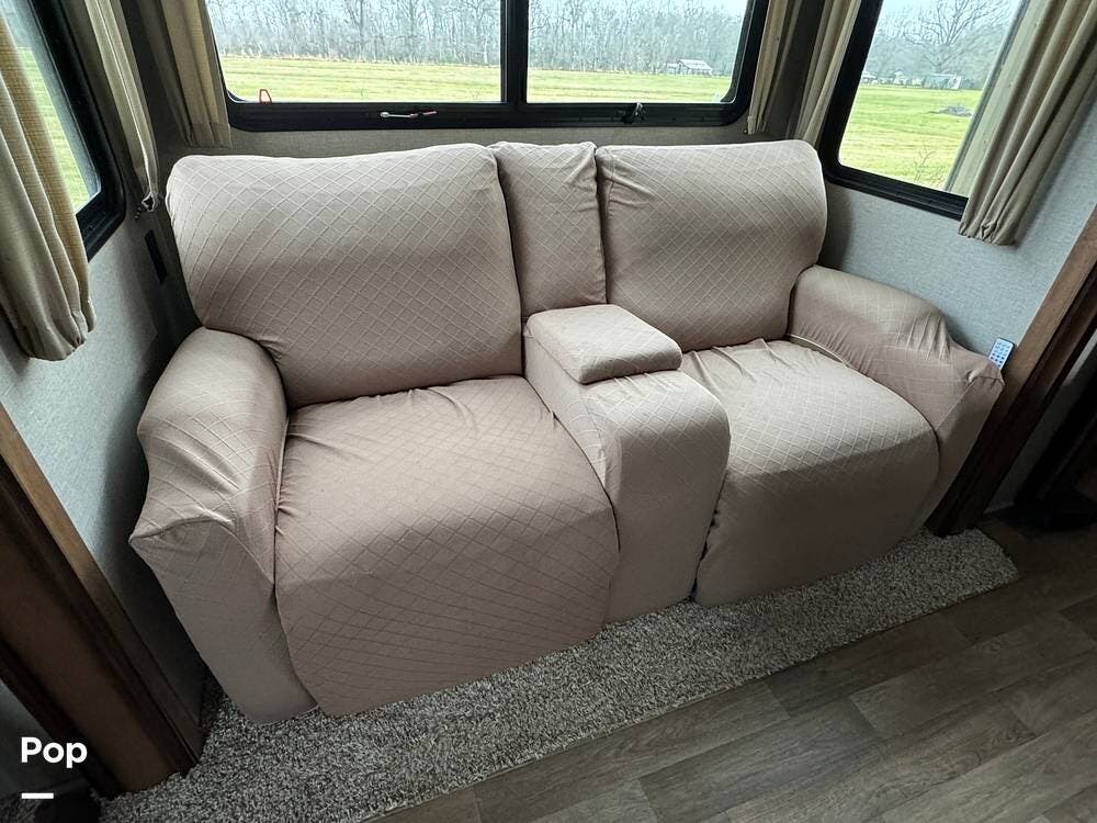 Beautiful 5th wheel ready to welcome you! Relax with a large couch, fireplace, 2 AC units, outdoor kitchen, recliners, and more!