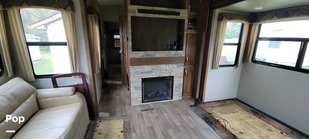 The living area features an electric fireplace. The 48" television needs to be replaced. The second slide in the living area is empty. It could easily be converted to an office, or put any furniture in there that you wish.