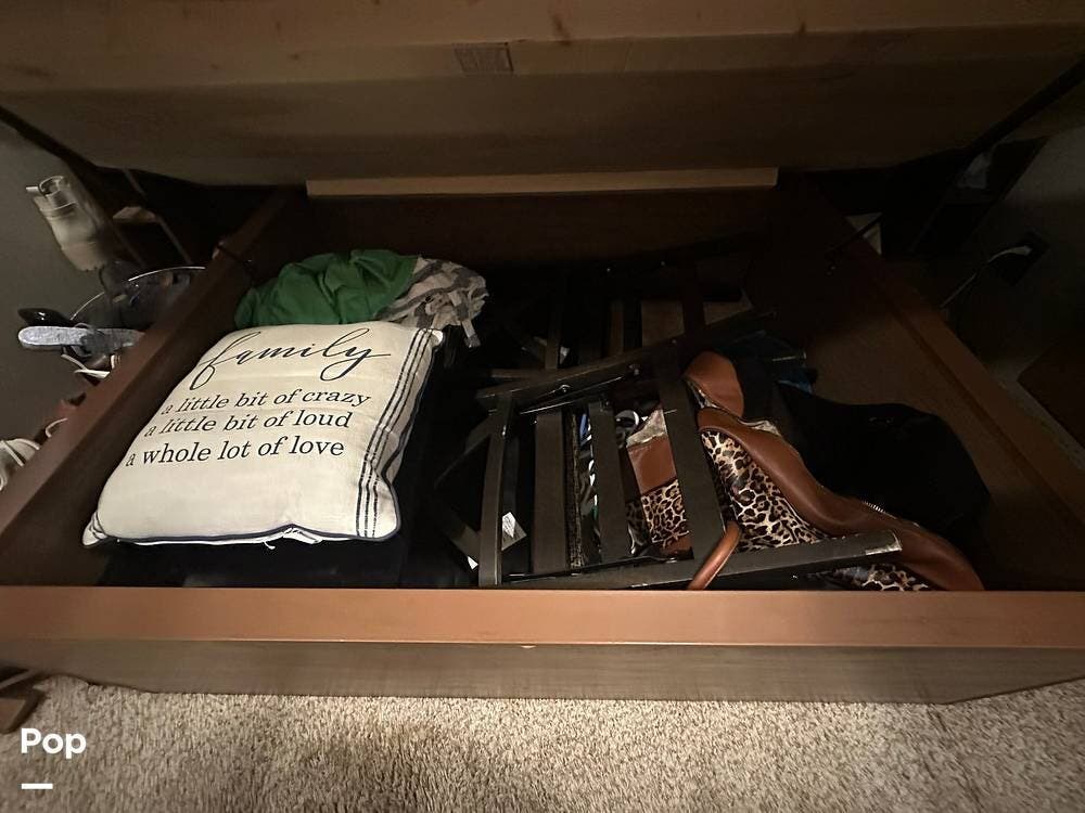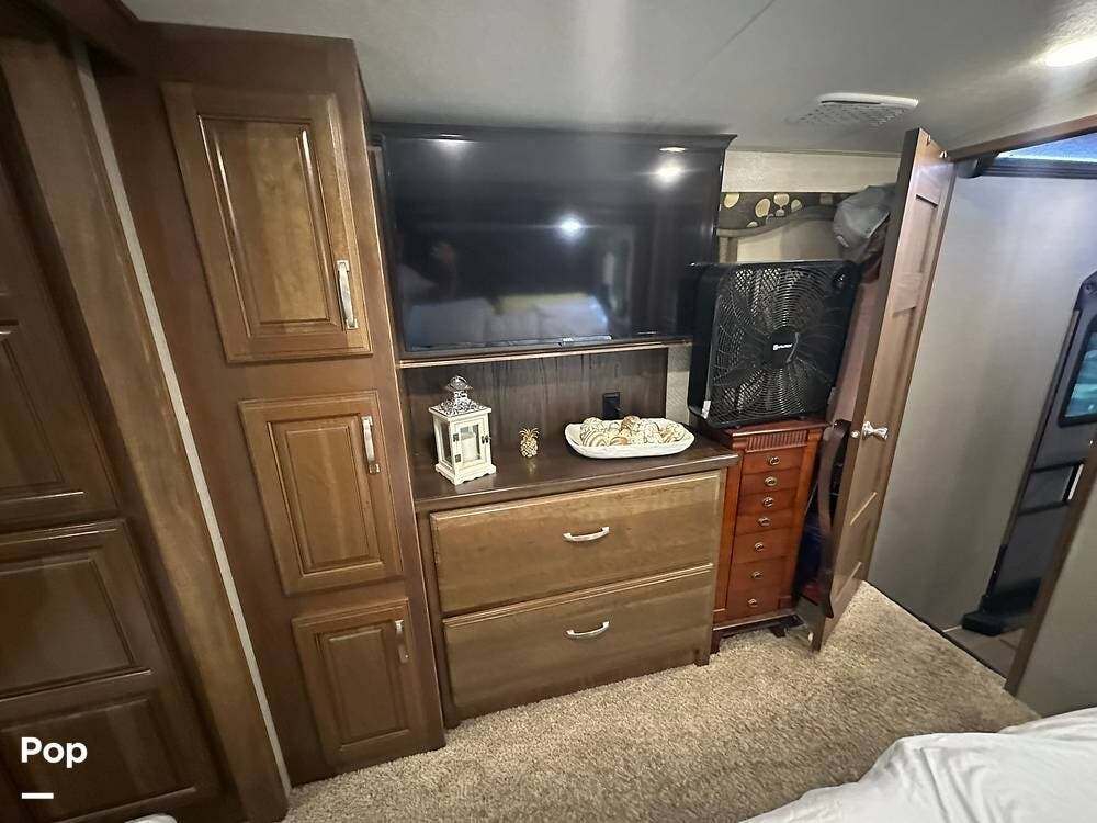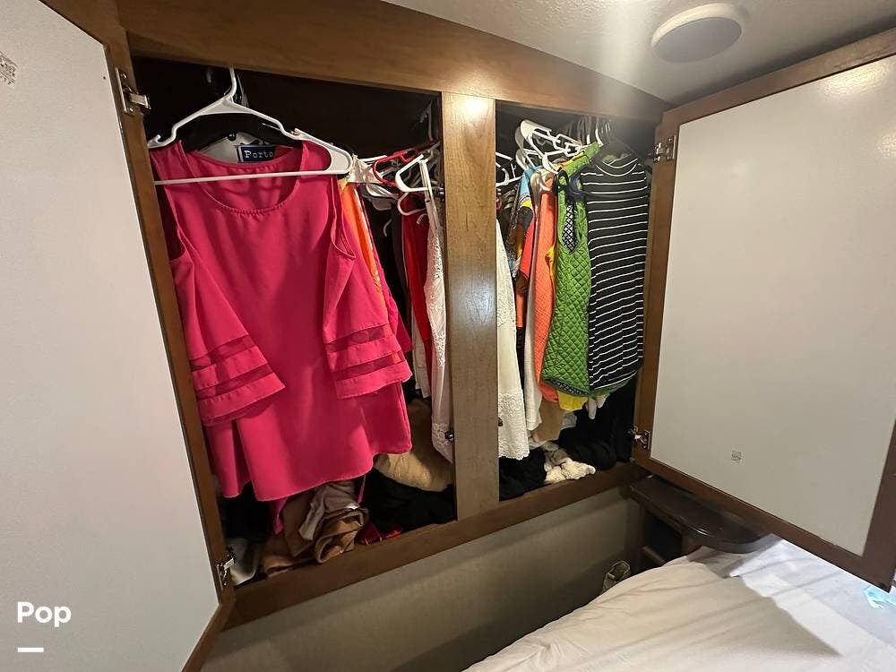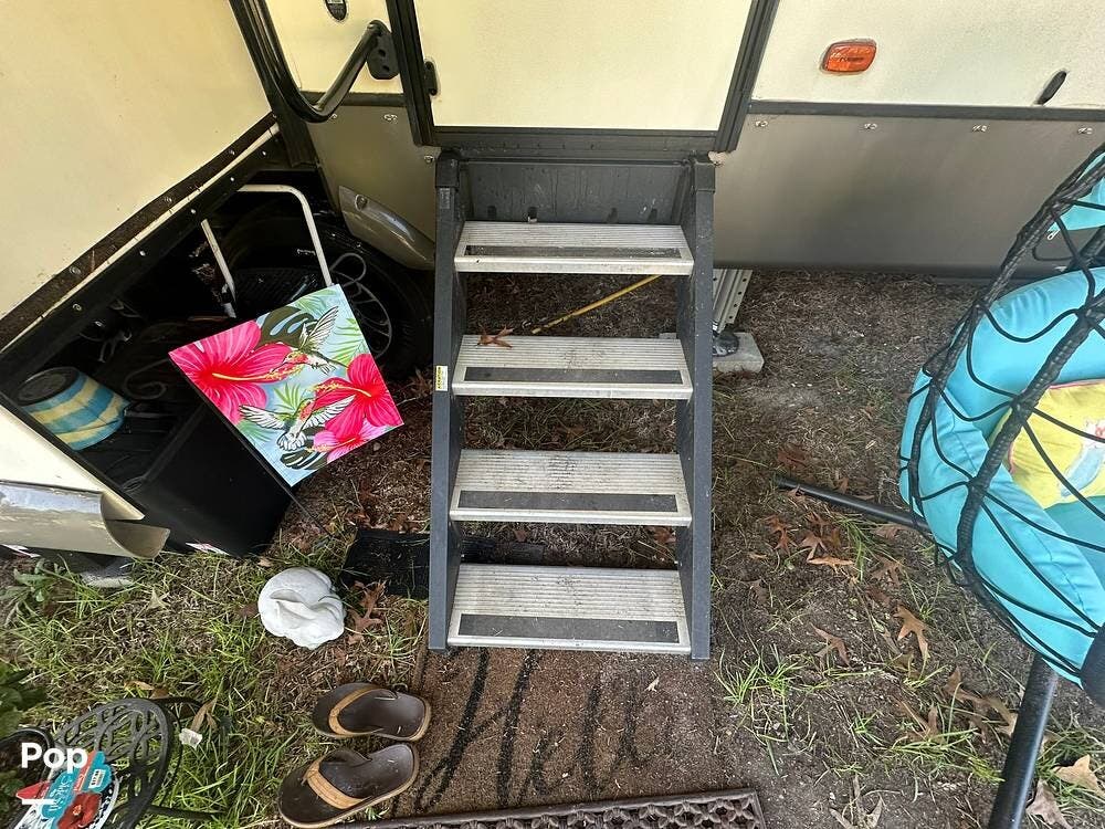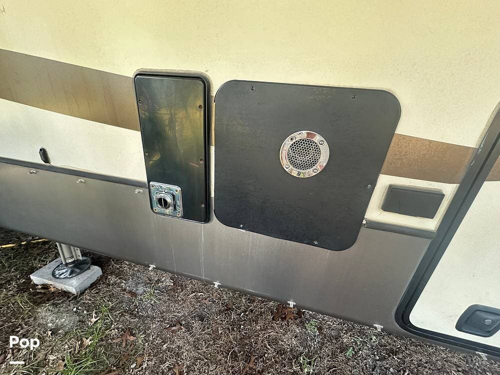 The outside living space is equipped with an outdoor TV and stereo speakers. Two large awnings protect you from the environment. Plenty of storage, including a large pass-through.