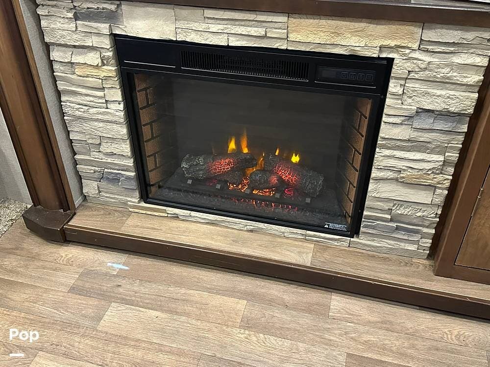 Inside is where this rig shines. Extending the two slides provides plenty of room for you and your guests to relax in the air conditioning during the summer or the electric fireplace in the colder months.