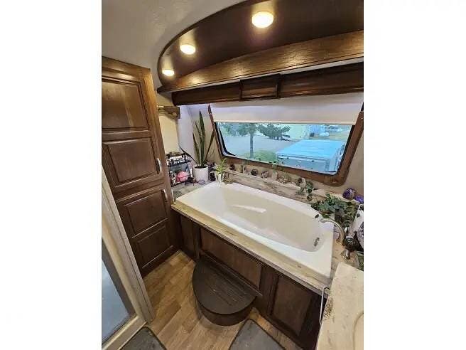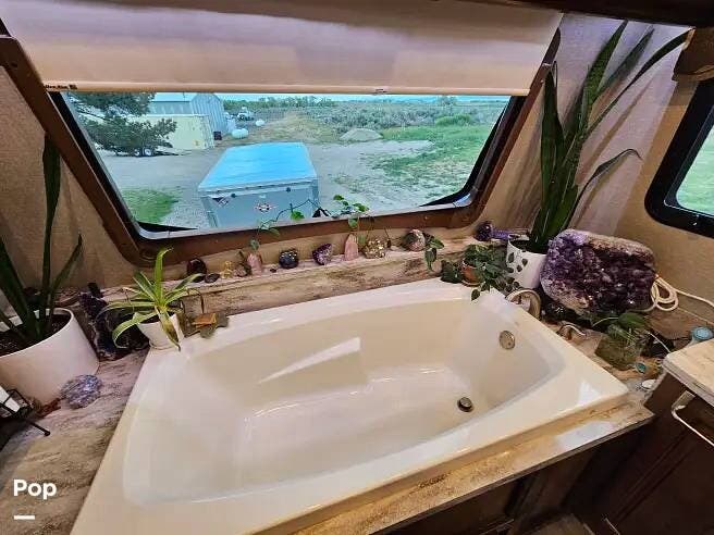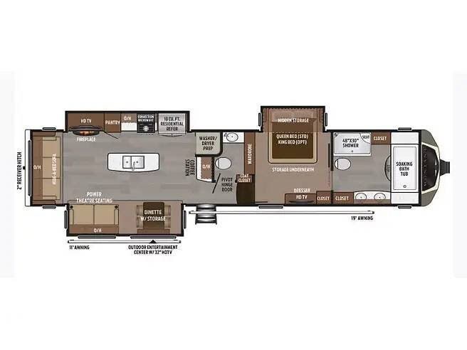 A full-time, friendly floor plan that includes the popular bath-and-a-half option, a large front bedroom, and a living area with a trampoline slide makes this a very comfortable setup.