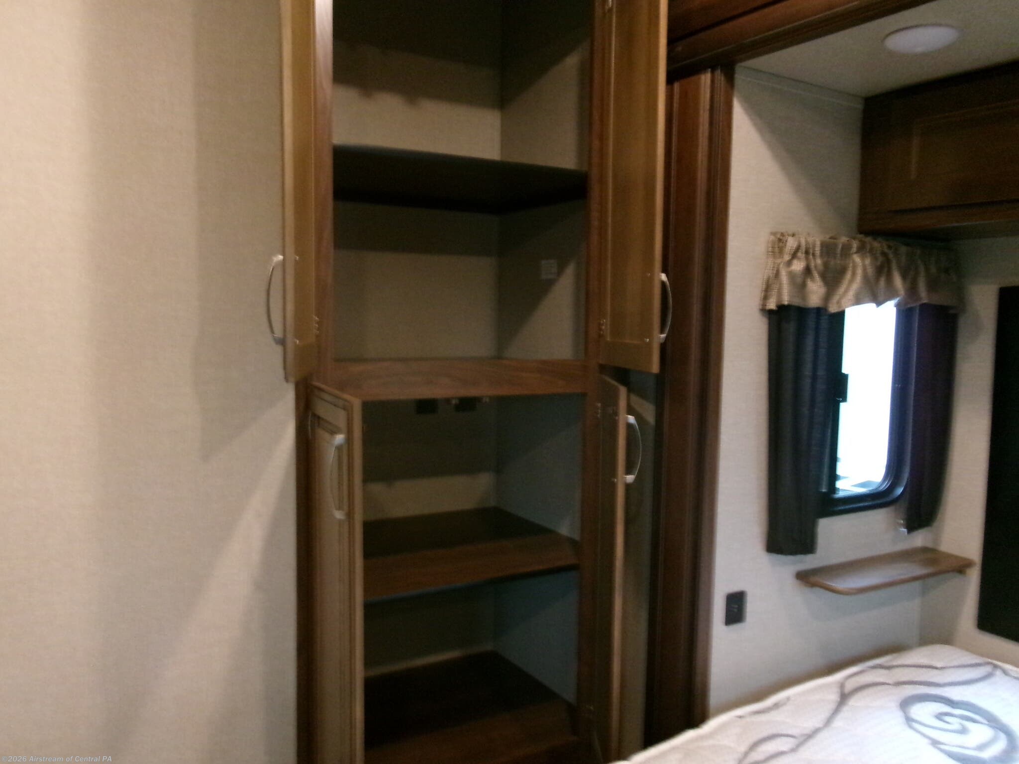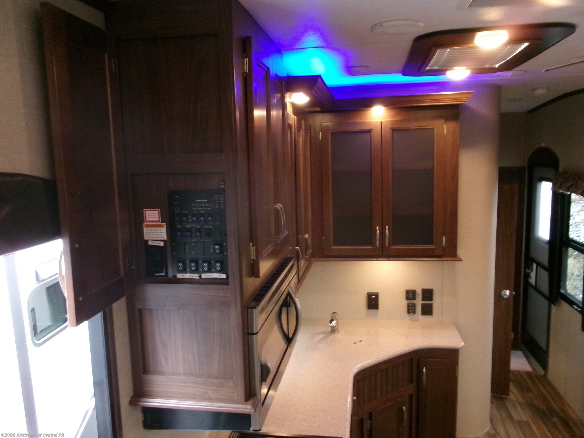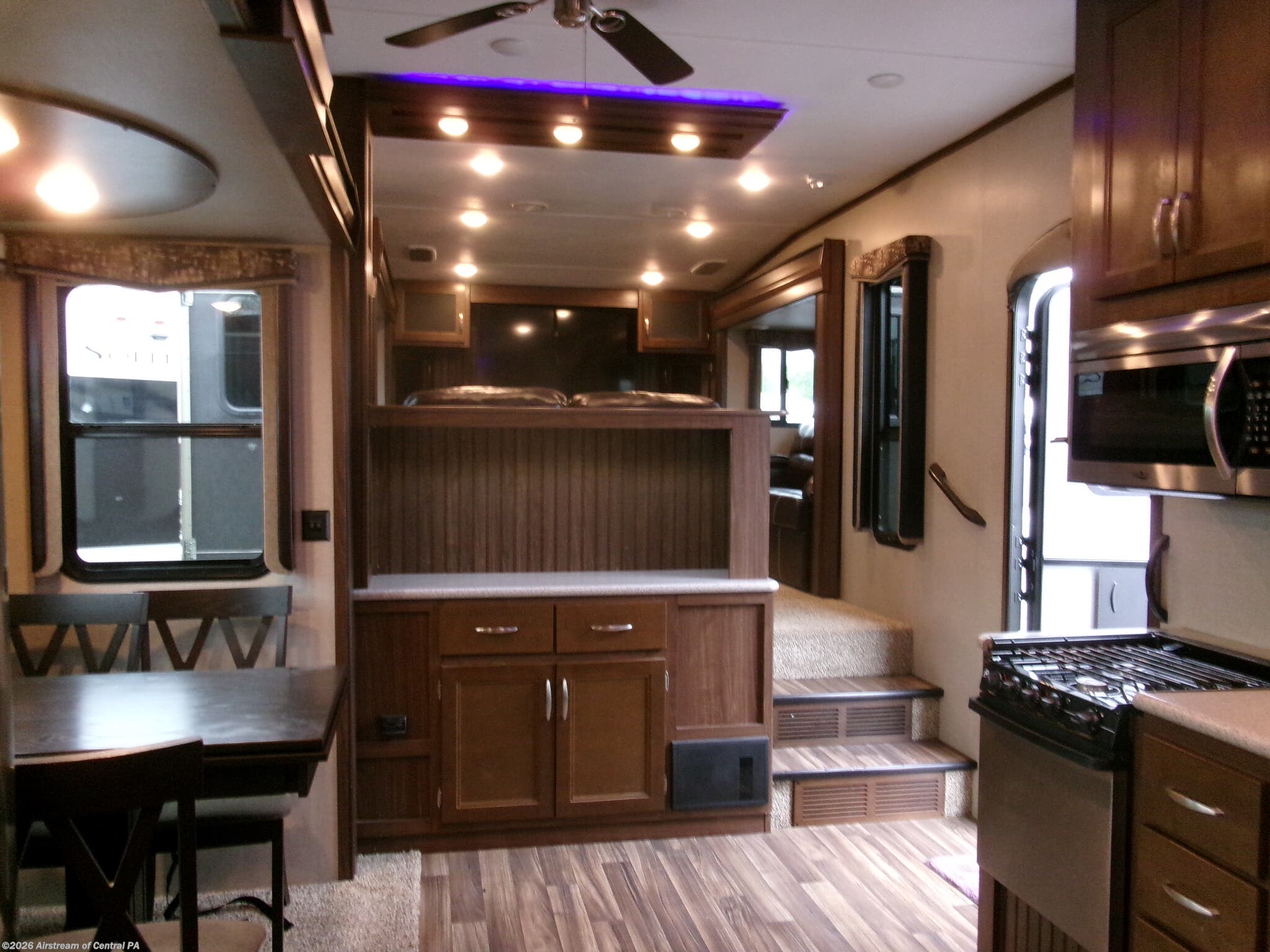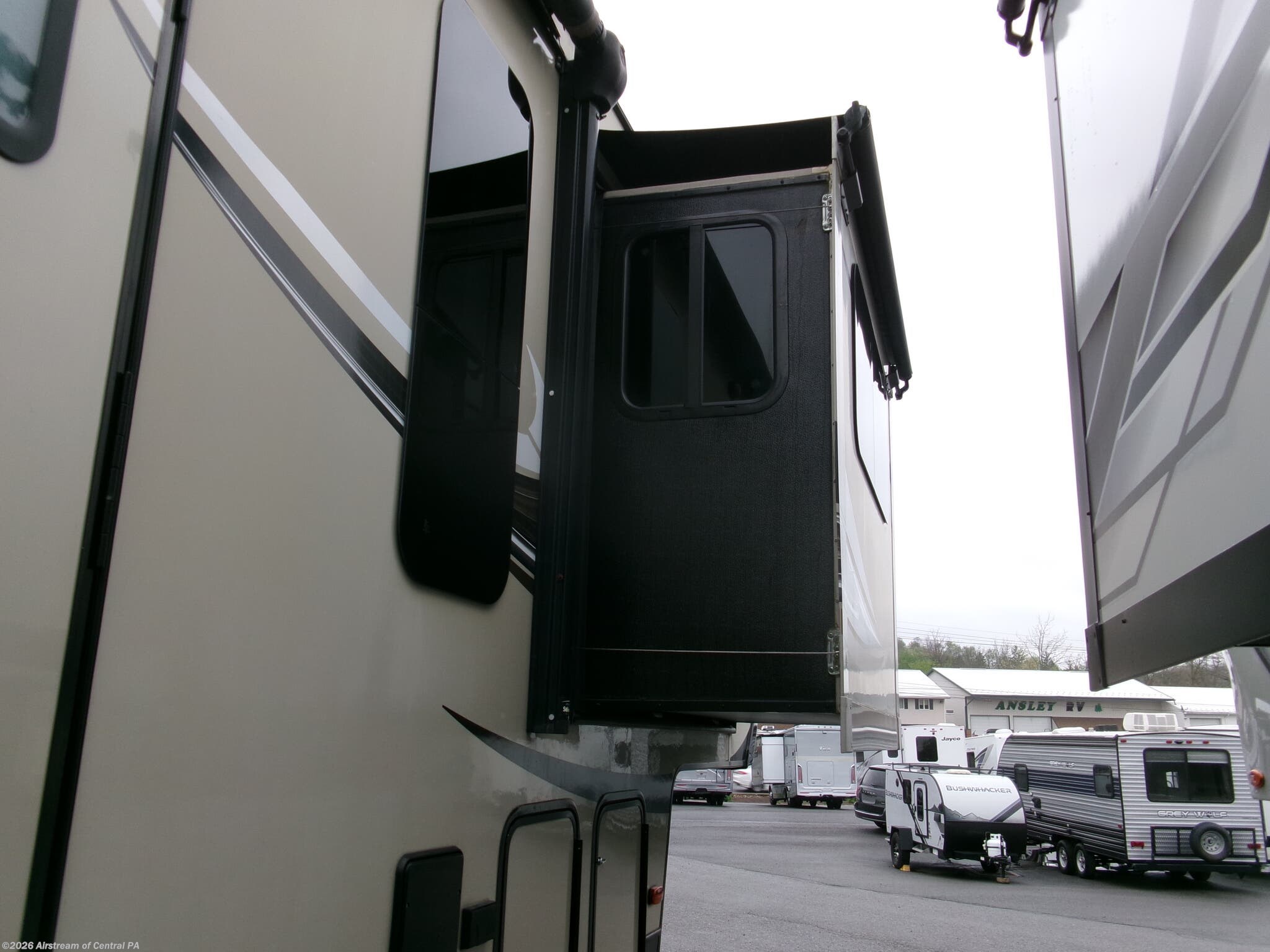 If you like uniqueness with luxury and convenience then it's time to take it up a notch in this Montana High Country fifth wheel. Model 375FL offers a patent-pending front windshield design and unique dual entry, one main entrance along the curbside and one entry across from the bathroom along the roadside. You will enjoy great traffic patterns from this floorplan design. The front living area offers plenty of seating choices plus a HD LED TV above an electric fireplace controlled by a remote to keep you warm during the chilly nights. The rear bedroom allows you to relax and rest on a queen bed with a shiplap design headboard, and watch a 32" HD LED TV before bedtime. You will find plenty of storage throughout the interior as well as outside, and a 2" receiver hitch on the rear, plus much more!