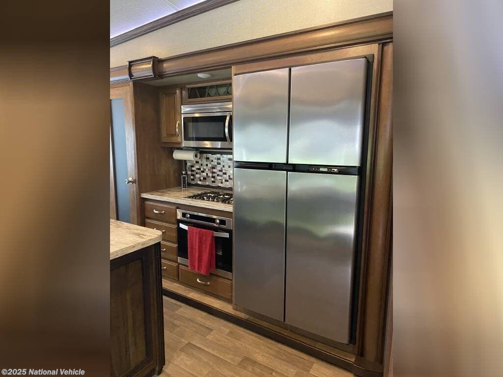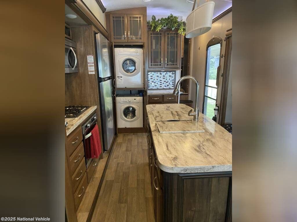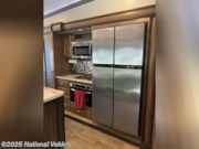 ? Elegant Interior ? Spacious & Functional Step inside a warm and inviting living space designed for comfort and entertaining. The rear living area features electric recliners, a queen pull-out sofa, and a large HDTV above a fireplace for cozy evenings. The kitchen island and coffee station add a touch of home, along with an 18 cu. ft. gas/electric refrigerator, convection microwave, 3-burner stove, and freestanding dinette with 4 chairs. The In-Command App System makes controlling lights, slides, and climate easy ? right from your phone!