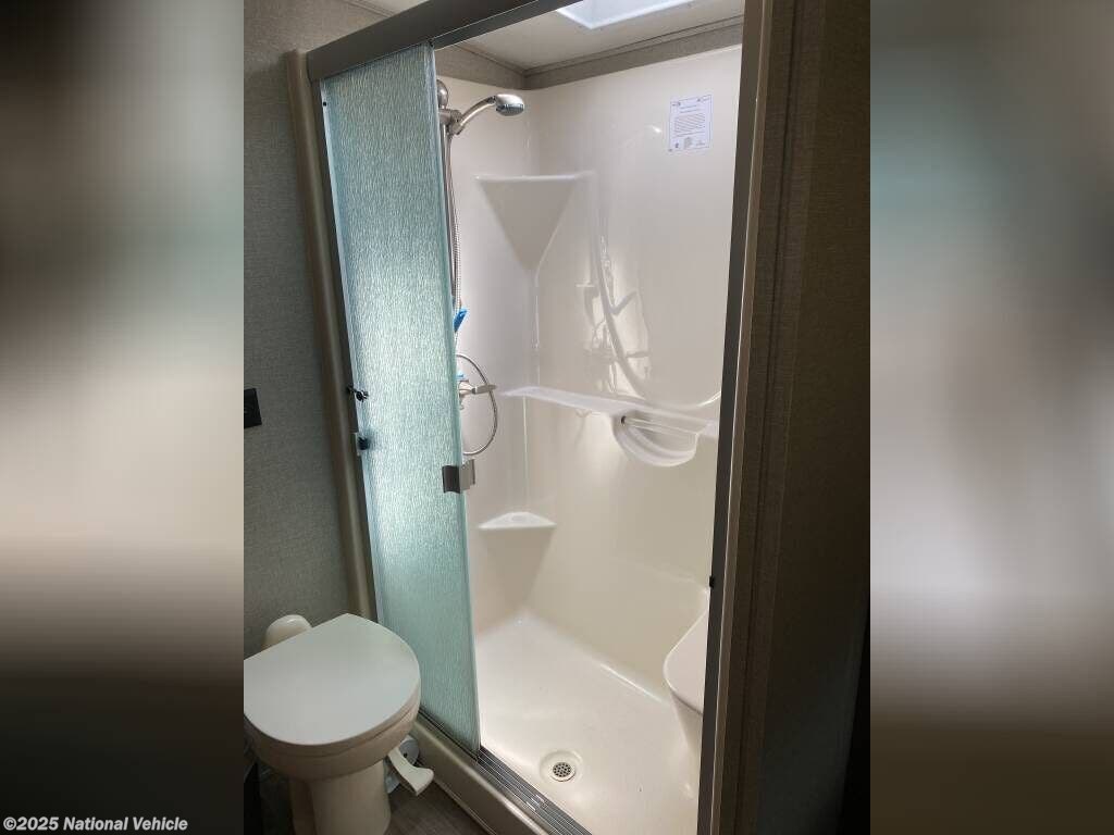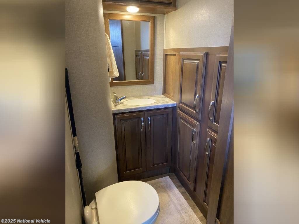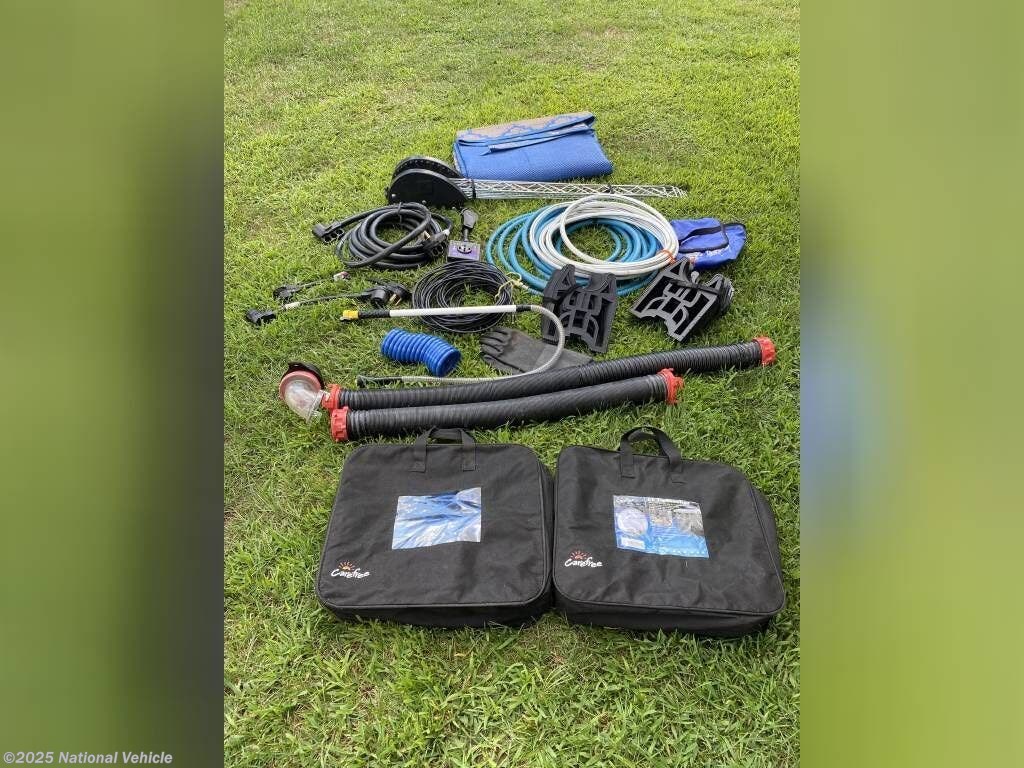 ?? Master Suite & Luxurious Front Bath Enjoy a peaceful retreat in the king-size master bedroom featuring a Smart TV, abundant storage, and walk-through access to the impressive front bathroom, complete with: Dual sinks Residential soaking bathtub Large glass shower with bench Full wardrobe and washer/dryer included Guests will appreciate the half bath located just off the main entry. ? Owner Upgrades & Seller Extras Exterior protection coating applied recently Brand new full winter RV cover included Power shade over front window (above tub) On-demand water heater Central vacuum system Satellite antenna + exterior entertainment center (32? TV) Wireless rearview camera system Newer HD truck tires + 2 spares 16K Curt fifth wheel hitch included Mini fridge in basement Extra electric cord, sewer & water hoses, and hookup fittings Patio rug, clothes rack, and fire extinguishers 3 MaxxAir II vent covers Day/night roller shades Vinyl-covered theater seating