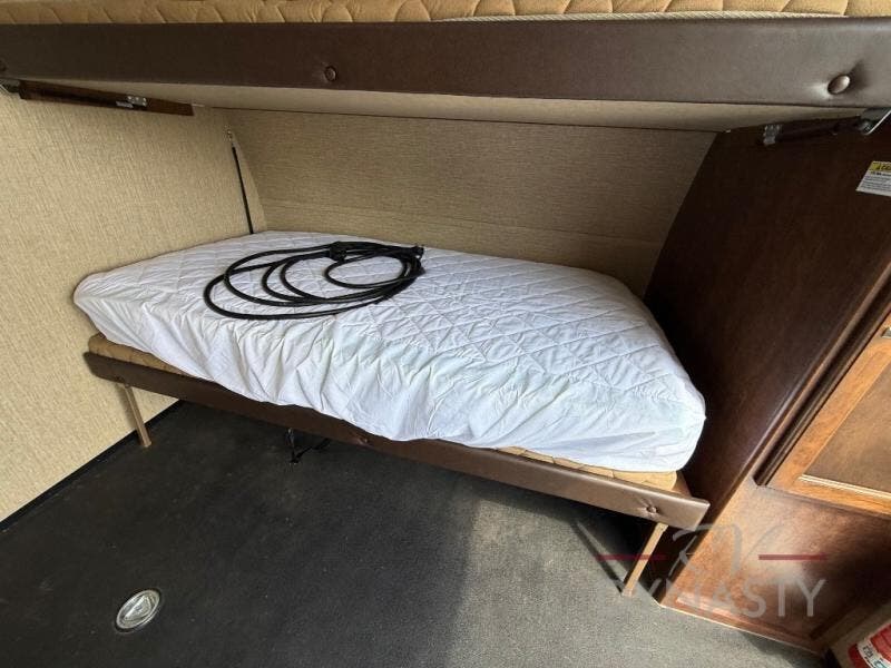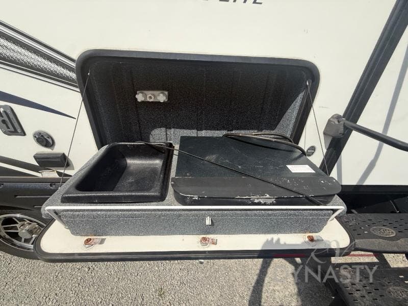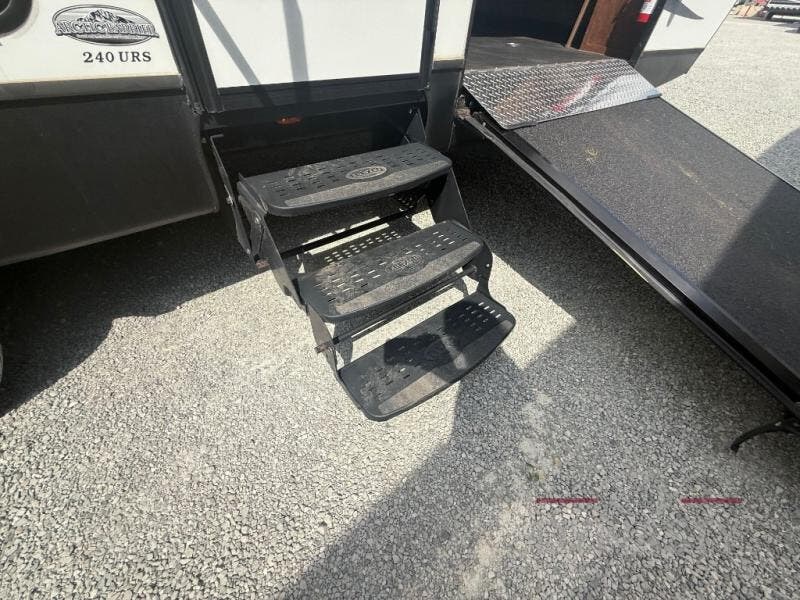 When you are ready to take along your off-road toys, bike the trails, and clean off after a fun day, then step inside this Outback Ultra Lite toy hauler travel trailer by Keystone RV. Model 240URS provides sleeping space for six between the rear king bed slide out, the flip-down bunk beds in the front cargo area, and furniture in the main living room. You even have space to pack your off-road toys or bikes in the private cargo area including a side ramp door for easy loading and unloading. The outside camp kitchen provides a second location for making meals for your family and friends, and there is much more to want!
